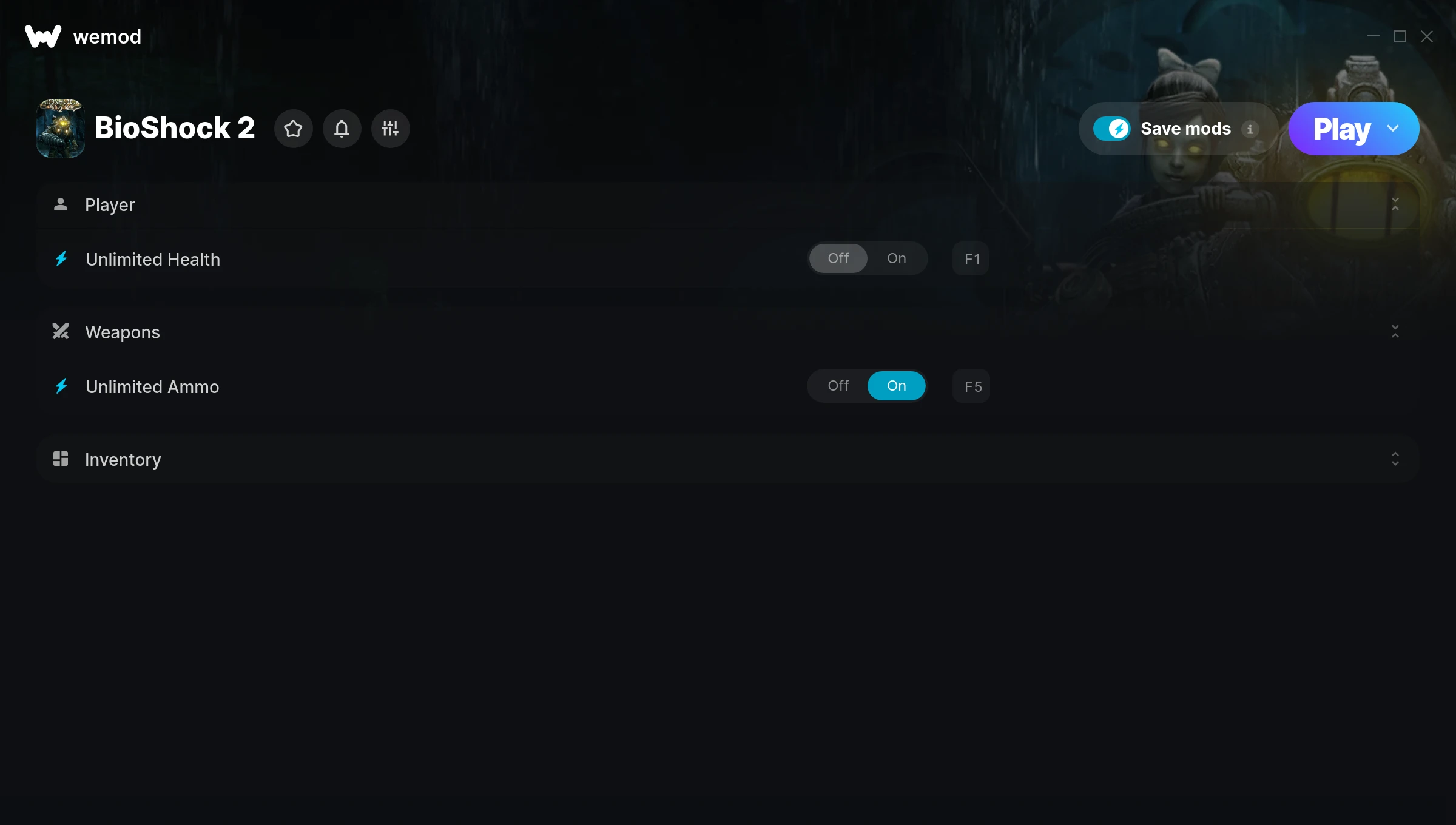 How do I use the cheats in BioShock 2?WeMod will safely display all of the games on your PC. Open a game from the list and simply press play. After the game loads and once you’re in-game, you can start enabling different cheats!Will this work with my game version?WeMod uses advanced technology to detect the game version you’re running and will let you know if it’s supported. If it’s not, you will still have the option of giving it a try or requesting an update!