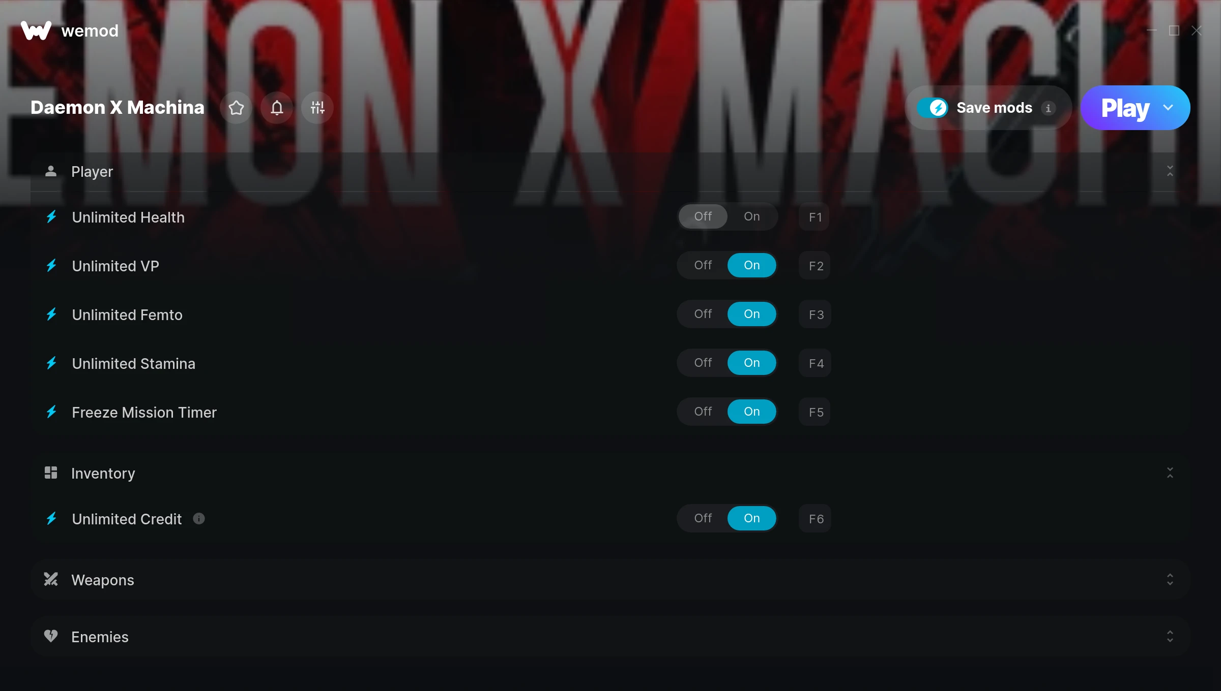 85MB Windows ...or visit us on your PC to download the app Get Unlimited Health, Unlimited VP & 7 other mods for Daemon X Machina with WeMod