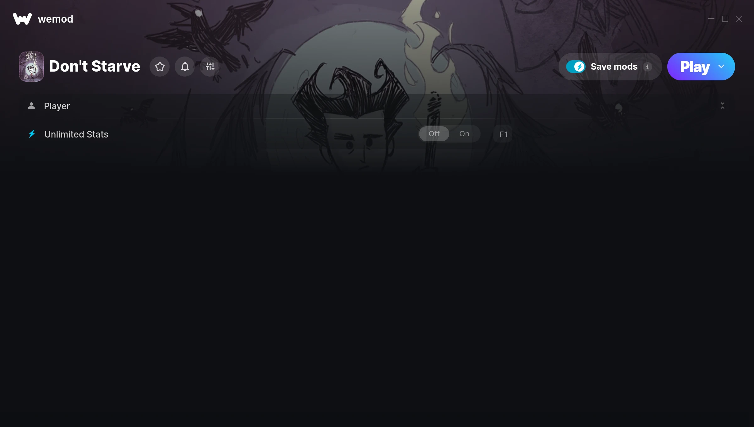 How do I use the cheats in Don't Starve?WeMod will safely display all of the games on your PC. Open a game from the list and simply press play. After the game loads and once you’re in-game, you can start enabling different cheats!Will this work with my game version?WeMod uses advanced technology to detect the game version you’re running and will let you know if it’s supported. If it’s not, you will still have the option of giving it a try or requesting an update!