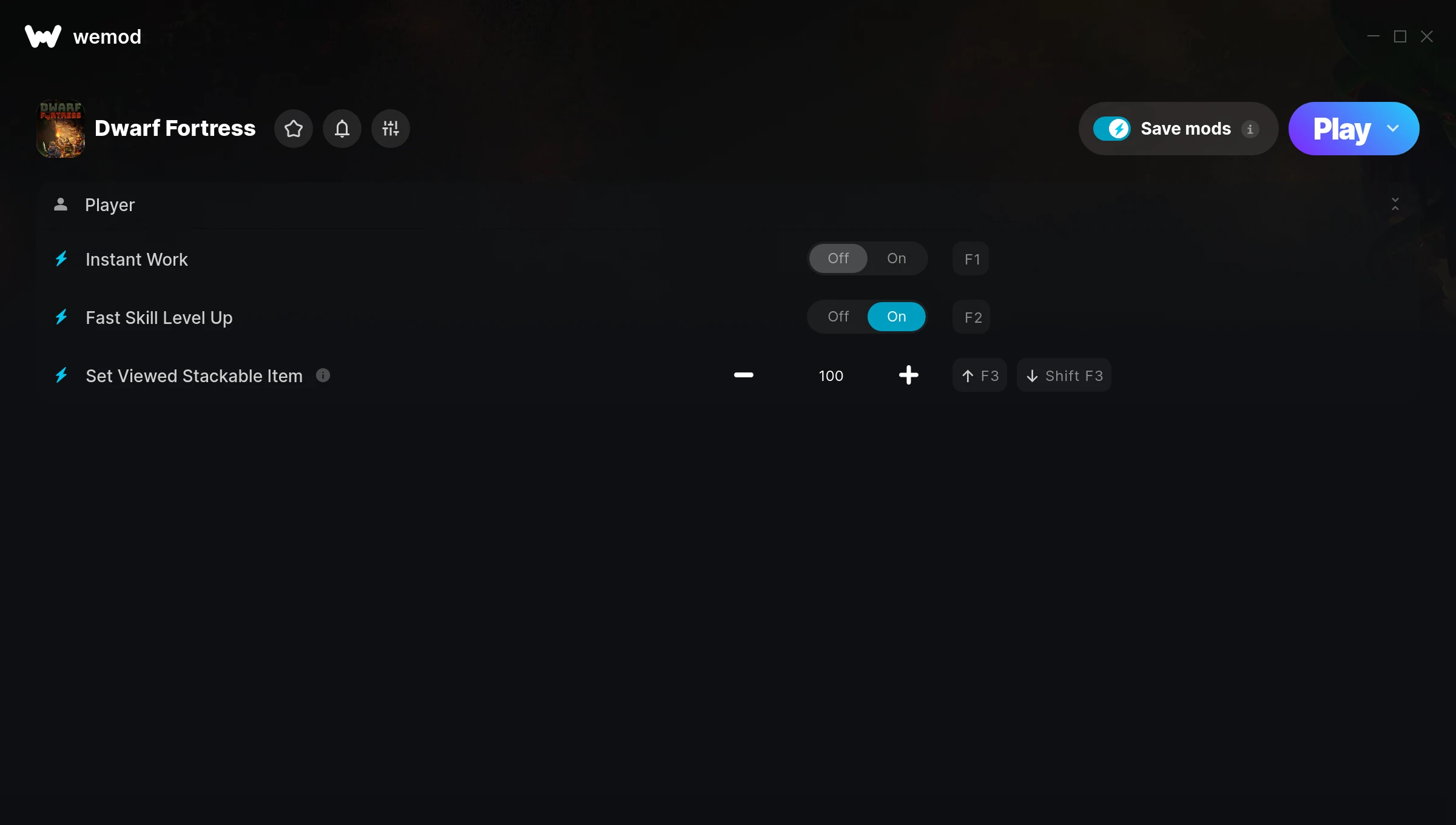 How do I use the cheats in Dwarf Fortress?WeMod will safely display all of the games on your PC. Open a game from the list and simply press play. After the game loads and once you’re in-game, you can start enabling different cheats!Will this work with my game version?WeMod uses advanced technology to detect the game version you’re running and will let you know if it’s supported. If it’s not, you will still have the option of giving it a try or requesting an update!