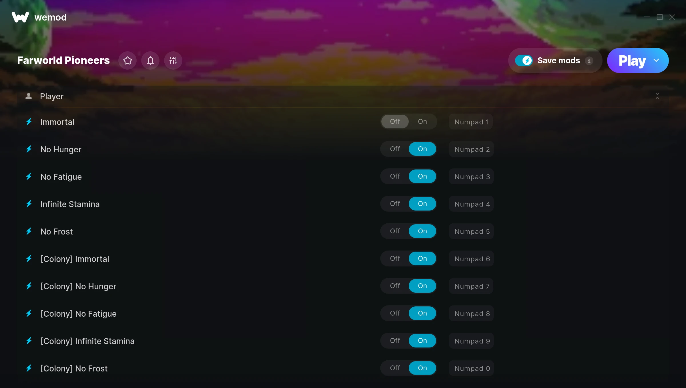 How do I use the cheats in Farworld Pioneers?WeMod will safely display all of the games on your PC. Open a game from the list and simply press play. After the game loads and once you’re in-game, you can start enabling different cheats!Will this work with my game version?WeMod uses advanced technology to detect the game version you’re running and will let you know if it’s supported. If it’s not, you will still have the option of giving it a try or requesting an update!