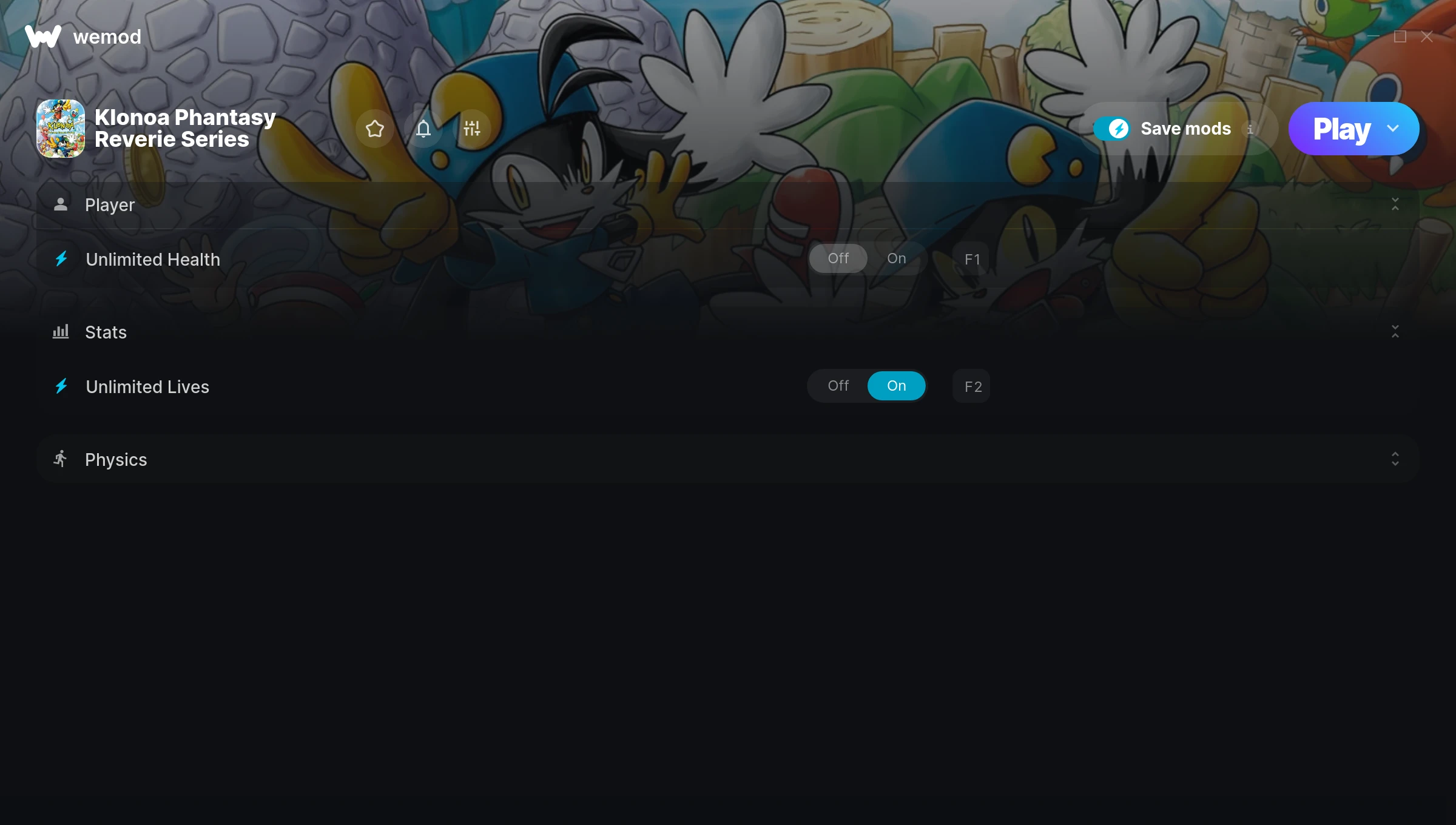 How do I use the cheats in Klonoa Phantasy Reverie Series?WeMod will safely display all of the games on your PC. Open a game from the list and simply press play. After the game loads and once you’re in-game, you can start enabling different cheats!Will this work with my game version?WeMod uses advanced technology to detect the game version you’re running and will let you know if it’s supported. If it’s not, you will still have the option of giving it a try or requesting an update!