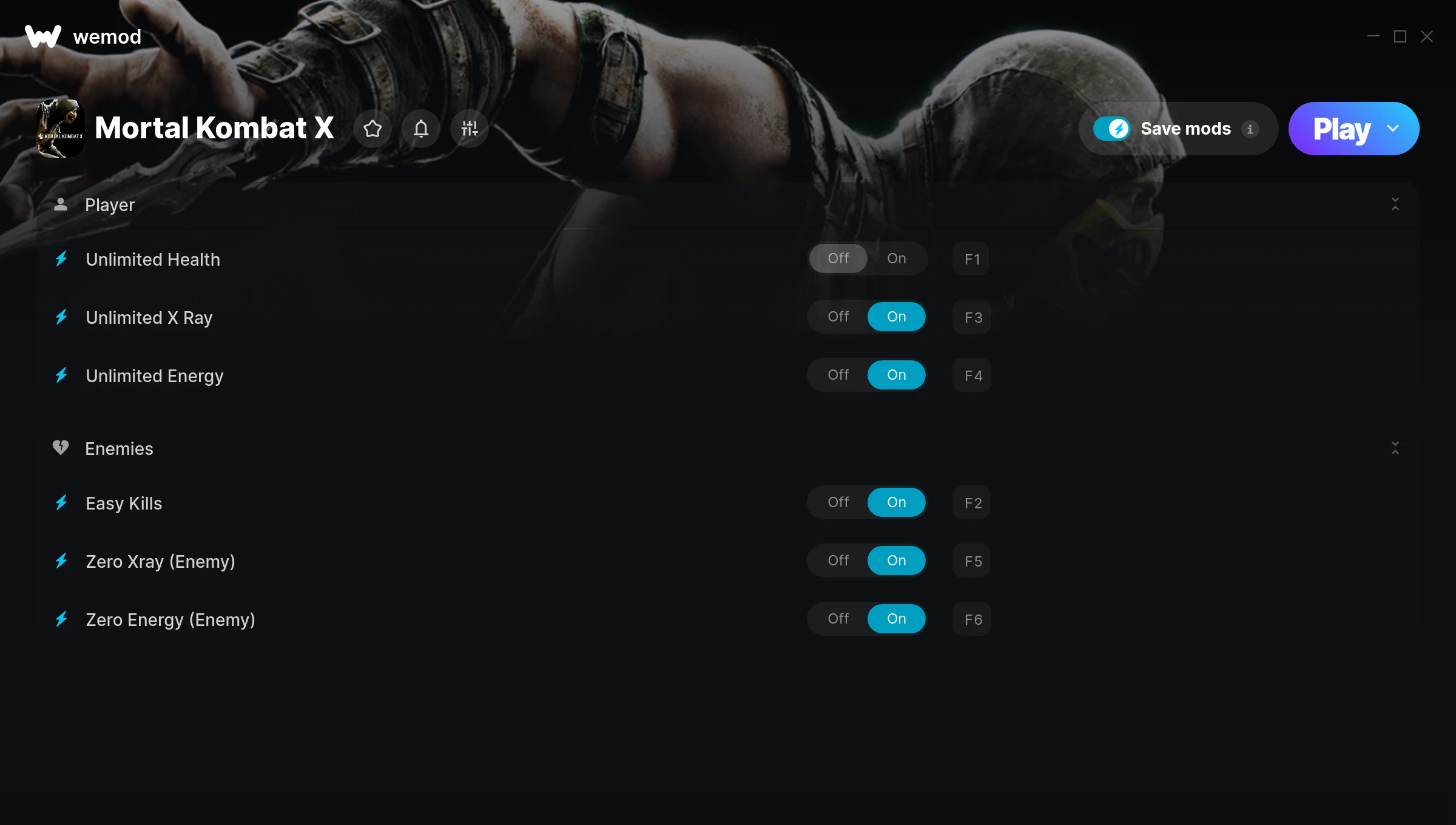 How do I use the cheats in Mortal Kombat X?WeMod will safely display all of the games on your PC. Open a game from the list and simply press play. After the game loads and once you’re in-game, you can start enabling different cheats!Will this work with my game version?WeMod uses advanced technology to detect the game version you’re running and will let you know if it’s supported. If it’s not, you will still have the option of giving it a try or requesting an update!