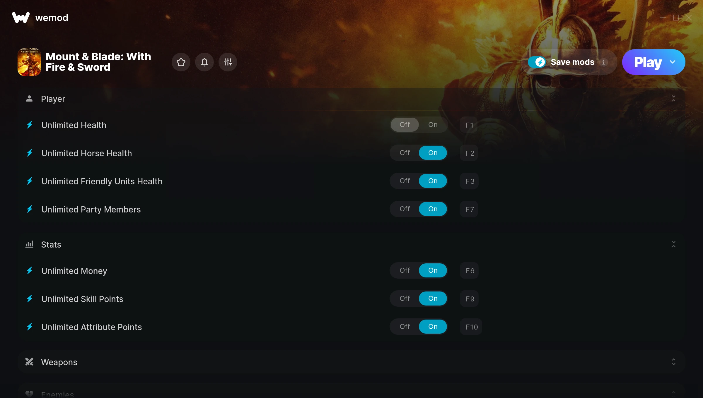 for Mount & Blade: With Fire & Sword with WeMod