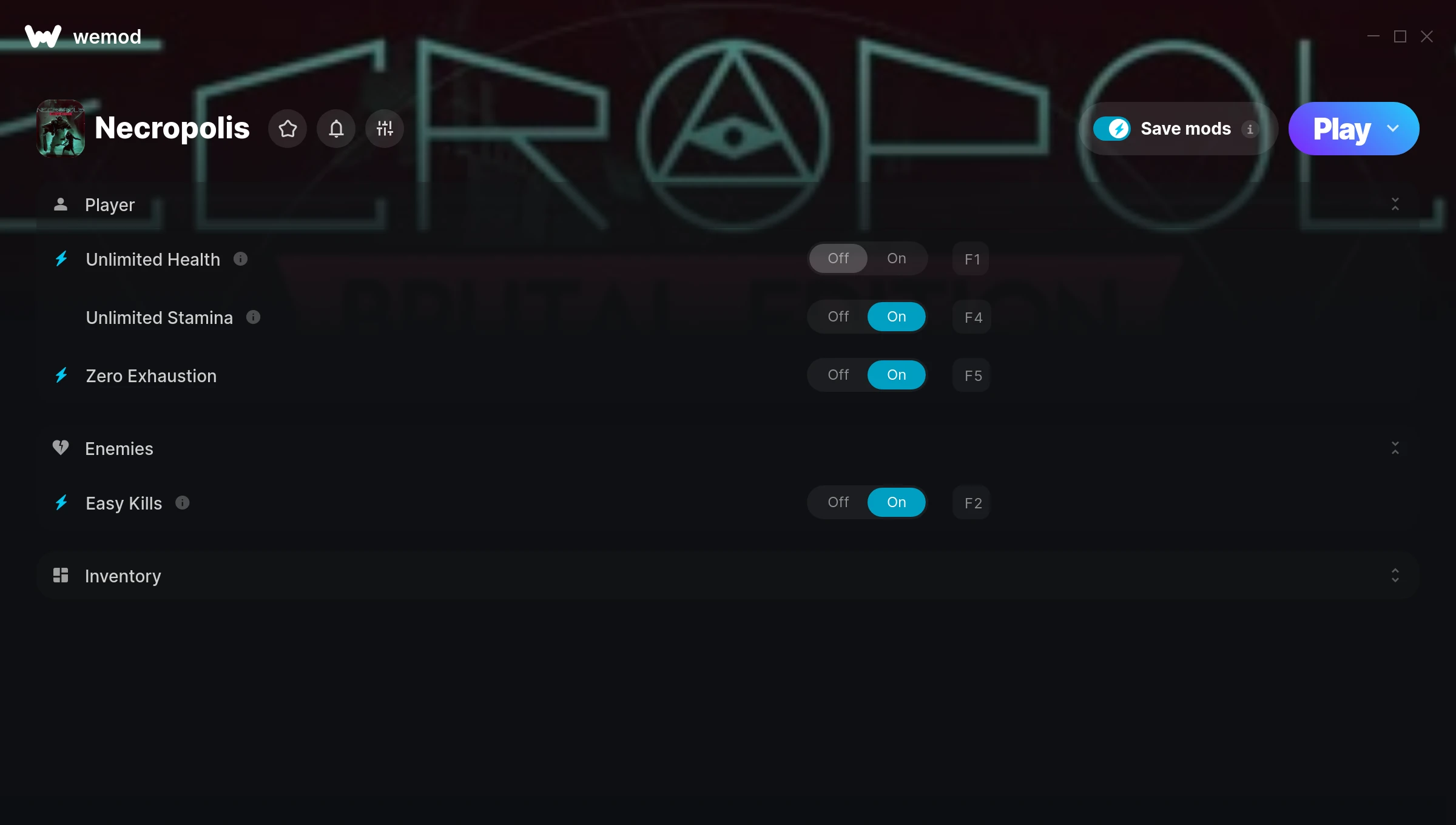 How do I use the cheats in Necropolis?WeMod will safely display all of the games on your PC. Open a game from the list and simply press play. After the game loads and once you’re in-game, you can start enabling different cheats!Will this work with my game version?WeMod uses advanced technology to detect the game version you’re running and will let you know if it’s supported. If it’s not, you will still have the option of giving it a try or requesting an update!