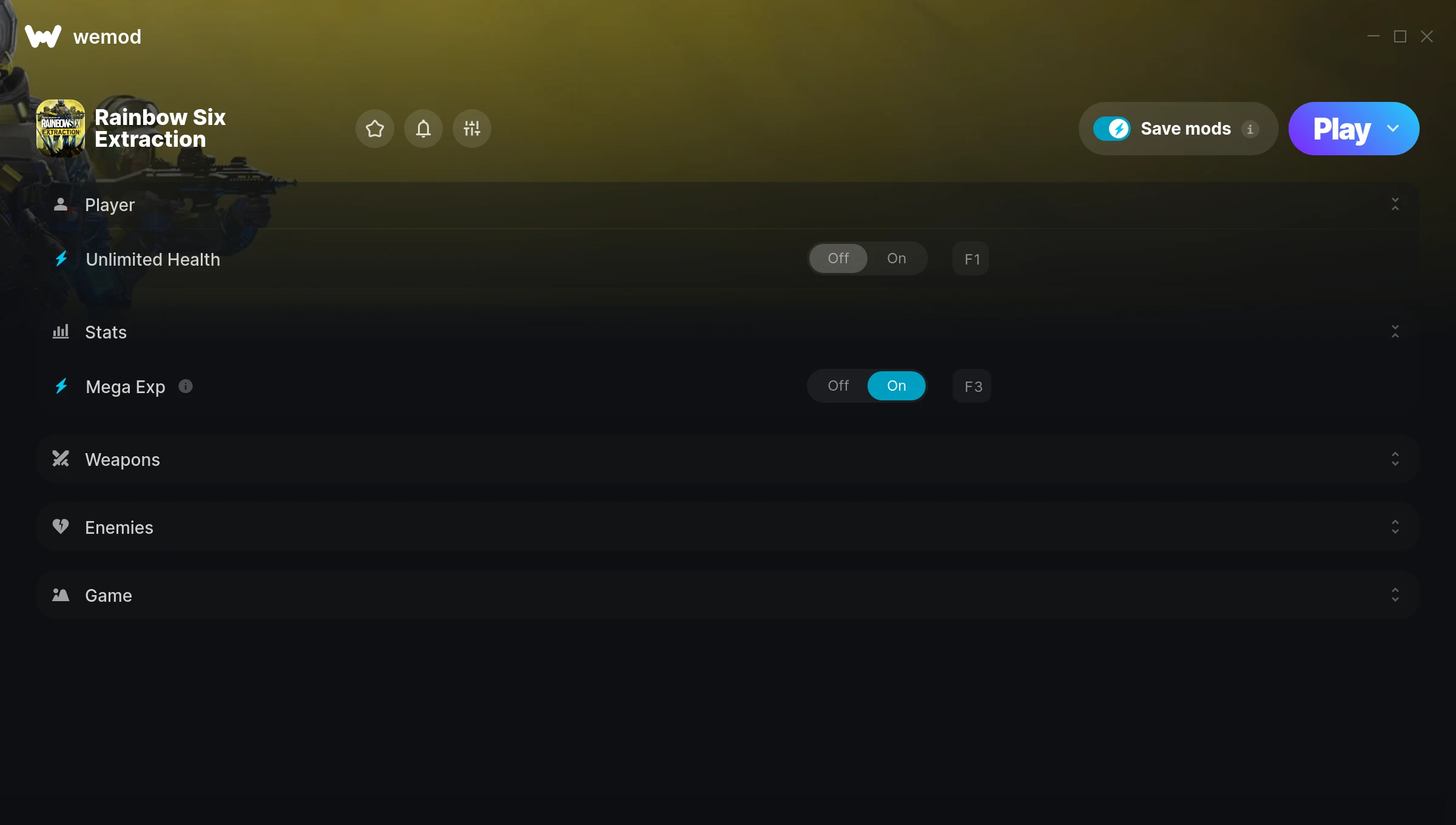 85MB Windows ...or visit us on your PC to download the app Get Unlimited Health, Mega Exp & 6 other mods for Rainbow Six Extraction with WeMod