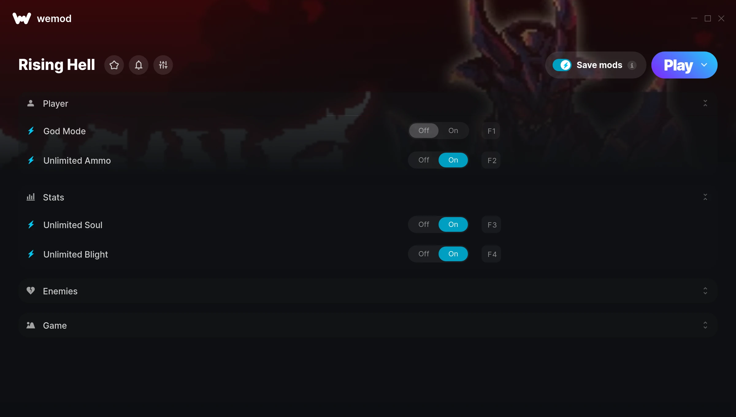 85MB Windows ...or visit us on your PC to download the app Get God Mode, Unlimited Ammo & 4 other mods for Rising Hell with WeMod