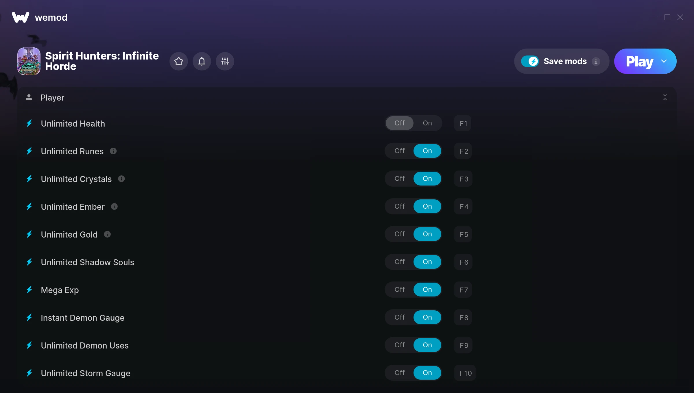 How do I use the cheats in Spirit Hunters: Infinite Horde?WeMod will safely display all of the games on your PC. Open a game from the list and simply press play. After the game loads and once you’re in-game, you can start enabling different cheats!Will this work with my game version?WeMod uses advanced technology to detect the game version you’re running and will let you know if it’s supported. If it’s not, you will still have the option of giving it a try or requesting an update!