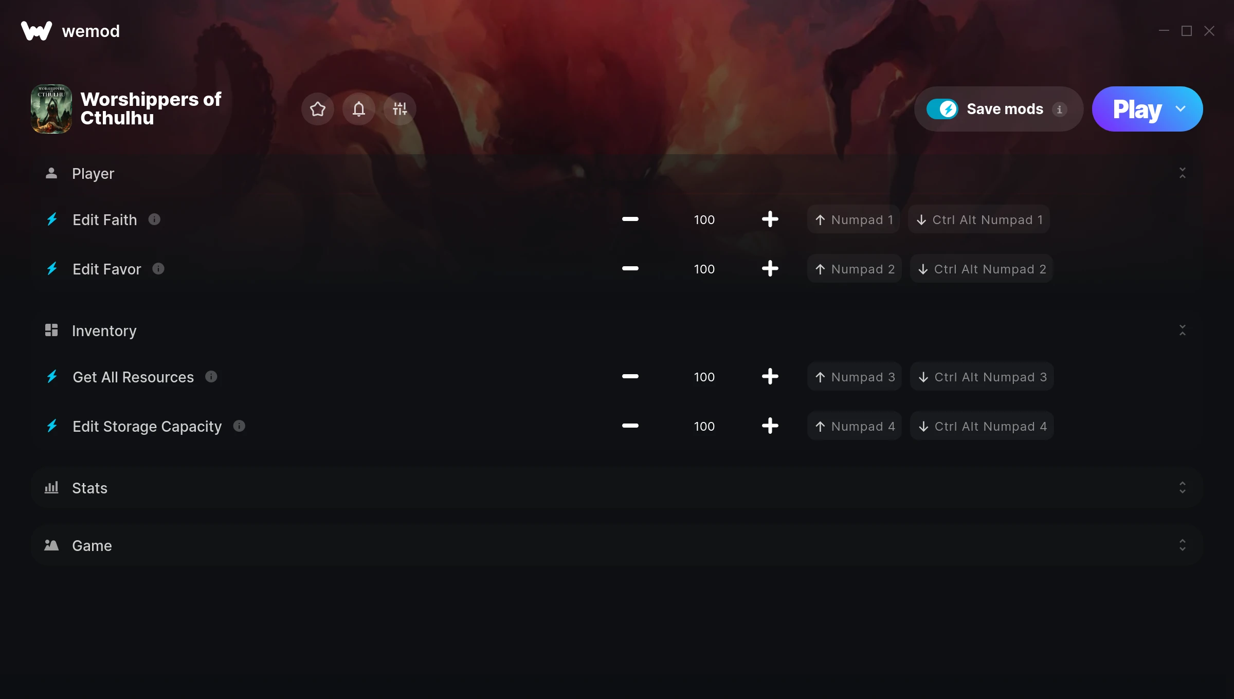 How do I use the cheats in Worshippers of Cthulhu?WeMod will safely display all of the games on your PC. Open a game from the list and simply press play. After the game loads and once you’re in-game, you can start enabling different cheats!Will this work with my game version?WeMod uses advanced technology to detect the game version you’re running and will let you know if it’s supported. If it’s not, you will still have the option of giving it a try or requesting an update!