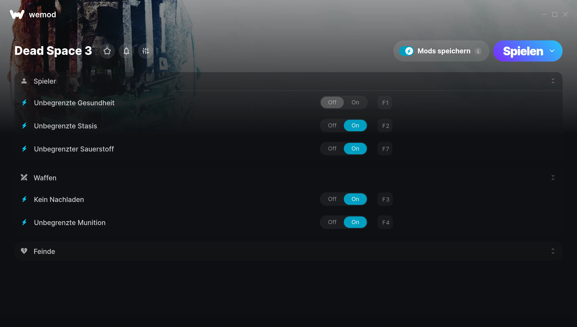 How do I use the cheats in Dead Space 3?WeMod will safely display all of the games on your PC. Open a game from the list and simply press play. After the game loads and once you’re in-game, you can start enabling different cheats!Will this work with my game version?WeMod uses advanced technology to detect the game version you’re running and will let you know if it’s supported. If it’s not, you will still have the option of giving it a try or requesting an update!
