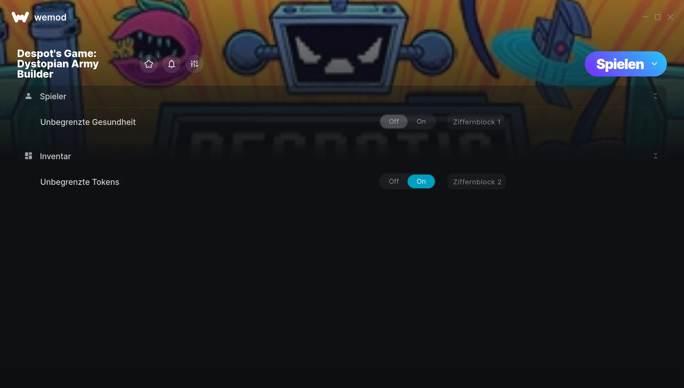 How do I use the cheats in Despot's Game: Dystopian Army Builder?WeMod will safely display all of the games on your PC. Open a game from the list and simply press play. After the game loads and once you’re in-game, you can start enabling different cheats!Will this work with my game version?WeMod uses advanced technology to detect the game version you’re running and will let you know if it’s supported. If it’s not, you will still have the option of giving it a try or requesting an update!