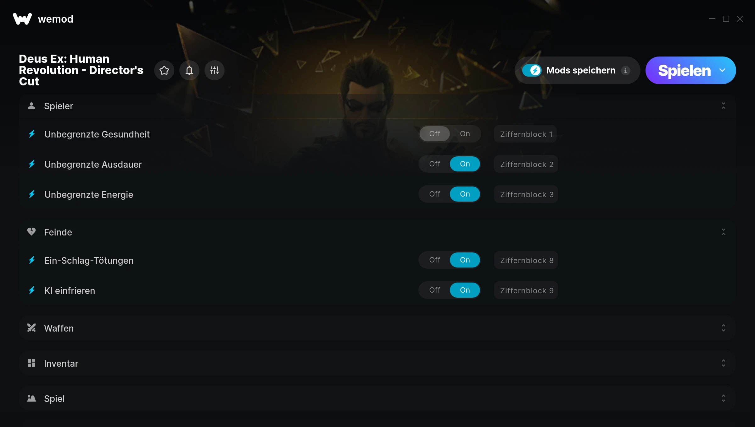 How do I use the cheats in Deus Ex: Human Revolution - Director's Cut?WeMod will safely display all of the games on your PC. Open a game from the list and simply press play. After the game loads and once you’re in-game, you can start enabling different cheats!Will this work with my game version?WeMod uses advanced technology to detect the game version you’re running and will let you know if it’s supported. If it’s not, you will still have the option of giving it a try or requesting an update!