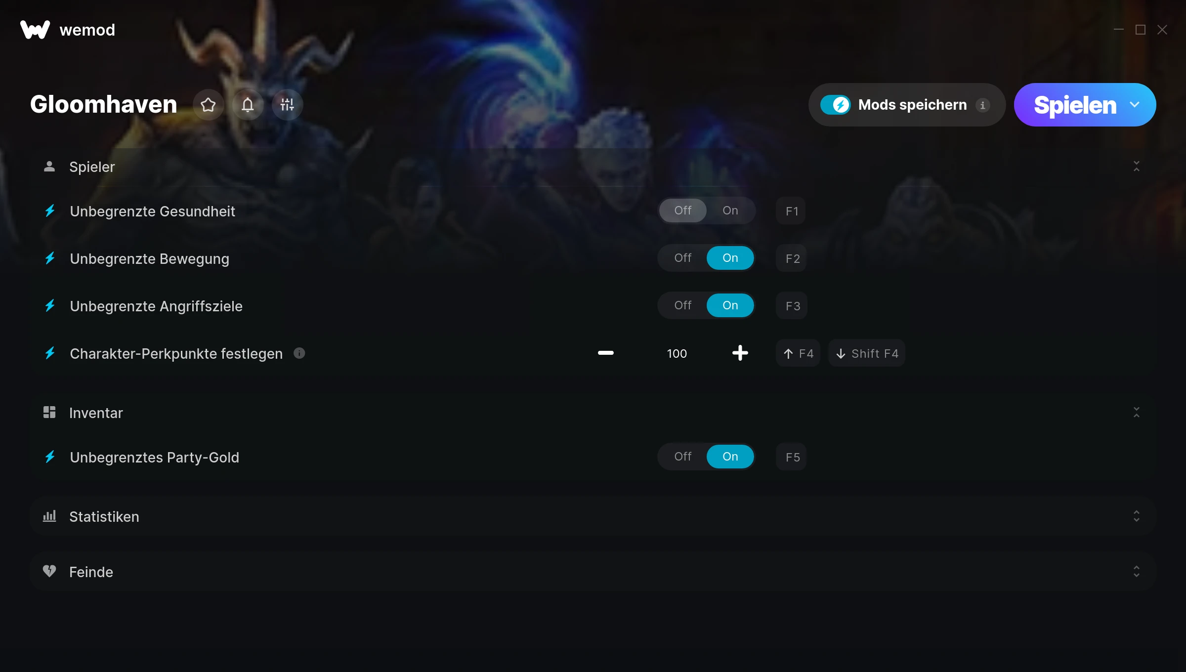 How do I use the cheats in Gloomhaven?WeMod will safely display all of the games on your PC. Open a game from the list and simply press play. After the game loads and once you’re in-game, you can start enabling different cheats!Will this work with my game version?WeMod uses advanced technology to detect the game version you’re running and will let you know if it’s supported. If it’s not, you will still have the option of giving it a try or requesting an update!
