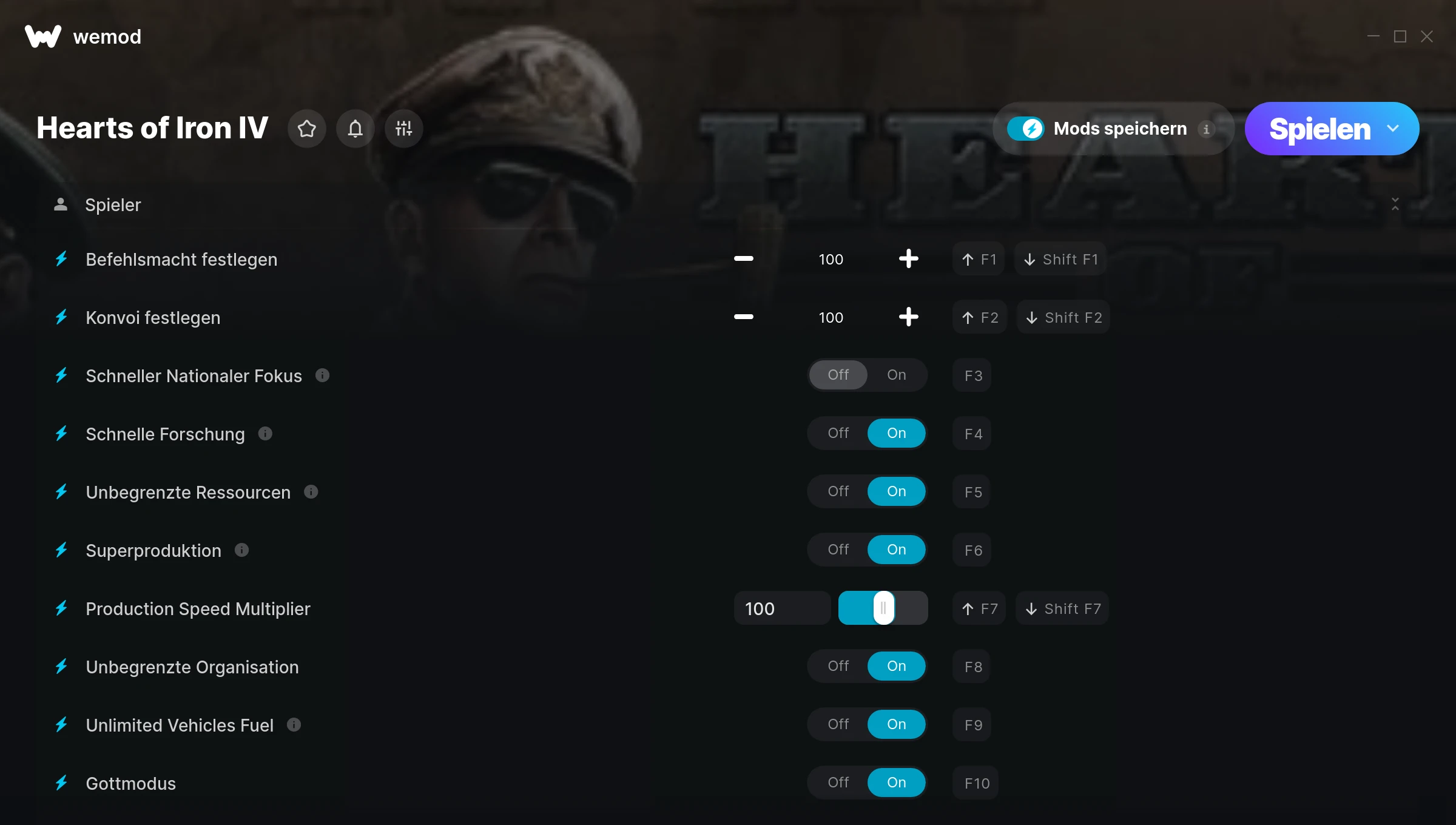 How do I use the cheats in Hearts of Iron IV?WeMod will safely display all of the games on your PC. Open a game from the list and simply press play. After the game loads and once you’re in-game, you can start enabling different cheats!Will this work with my game version?WeMod uses advanced technology to detect the game version you’re running and will let you know if it’s supported. If it’s not, you will still have the option of giving it a try or requesting an update!