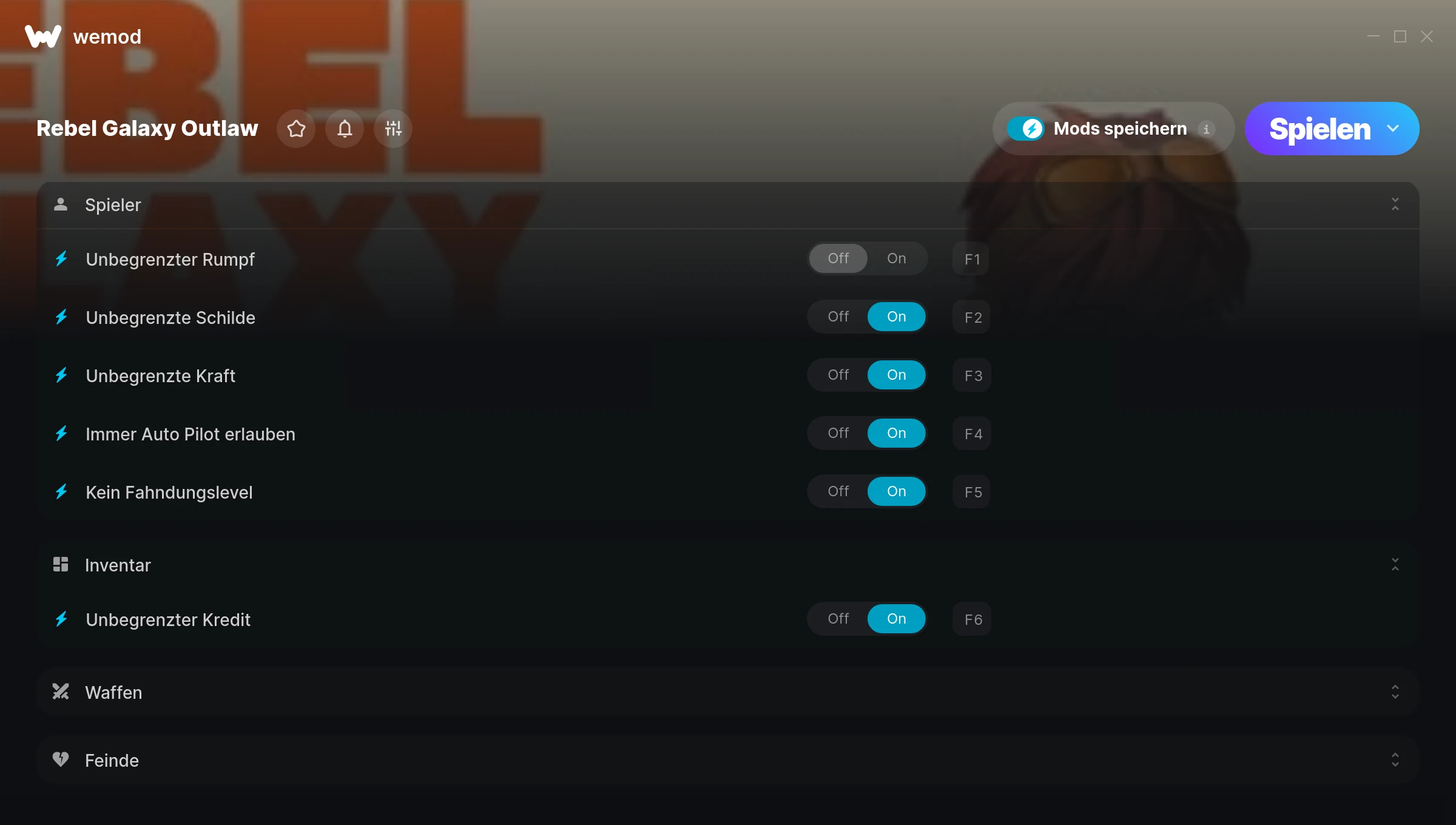 How do I use the cheats in Rebel Galaxy Outlaw?WeMod will safely display all of the games on your PC. Open a game from the list and simply press play. After the game loads and once you’re in-game, you can start enabling different cheats!Will this work with my game version?WeMod uses advanced technology to detect the game version you’re running and will let you know if it’s supported. If it’s not, you will still have the option of giving it a try or requesting an update!