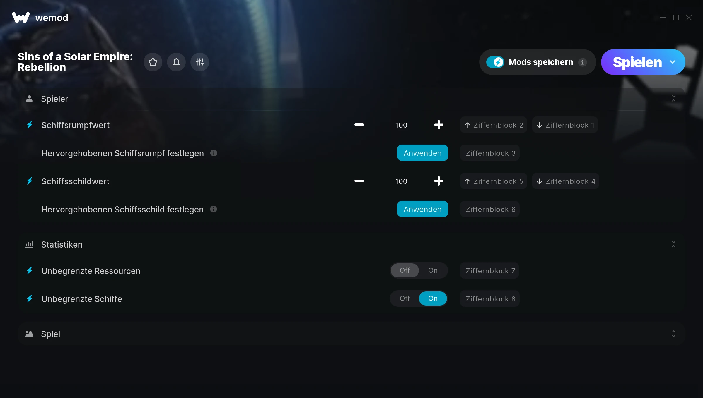 How do I use the cheats in Sins of a Solar Empire: Rebellion?WeMod will safely display all of the games on your PC. Open a game from the list and simply press play. After the game loads and once you’re in-game, you can start enabling different cheats!Will this work with my game version?WeMod uses advanced technology to detect the game version you’re running and will let you know if it’s supported. If it’s not, you will still have the option of giving it a try or requesting an update!
