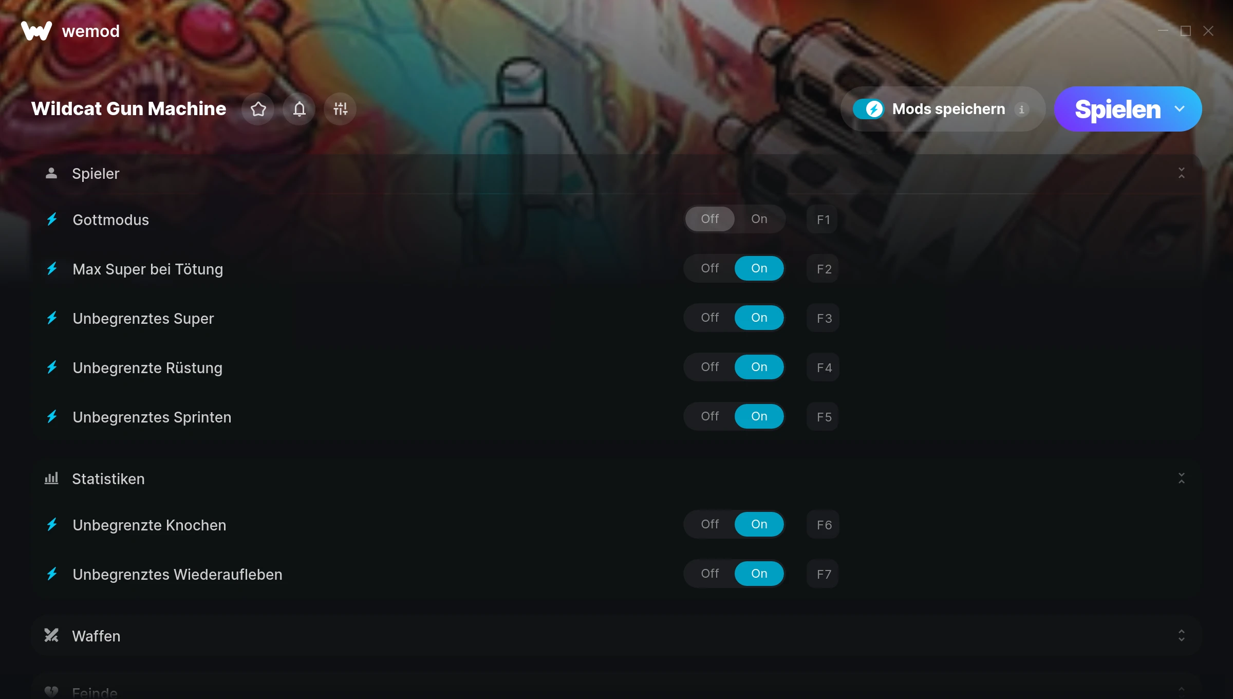 How do I use the cheats in Wildcat Gun Machine?WeMod will safely display all of the games on your PC. Open a game from the list and simply press play. After the game loads and once you’re in-game, you can start enabling different cheats!Will this work with my game version?WeMod uses advanced technology to detect the game version you’re running and will let you know if it’s supported. If it’s not, you will still have the option of giving it a try or requesting an update!