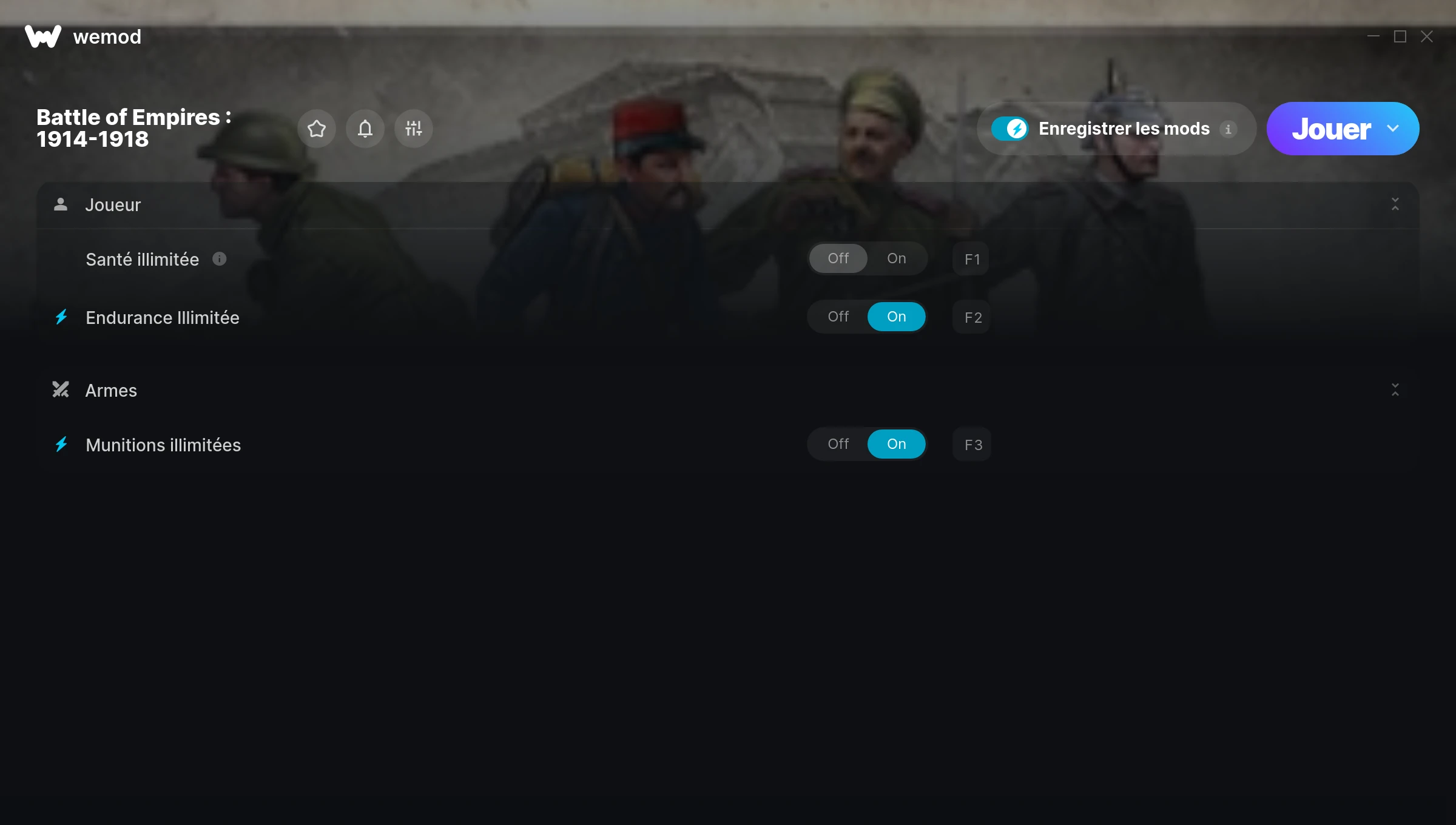 How do I use the cheats in Battle of Empires : 1914-1918?WeMod will safely display all of the games on your PC. Open a game from the list and simply press play. After the game loads and once you’re in-game, you can start enabling different cheats!Will this work with my game version?WeMod uses advanced technology to detect the game version you’re running and will let you know if it’s supported. If it’s not, you will still have the option of giving it a try or requesting an update!