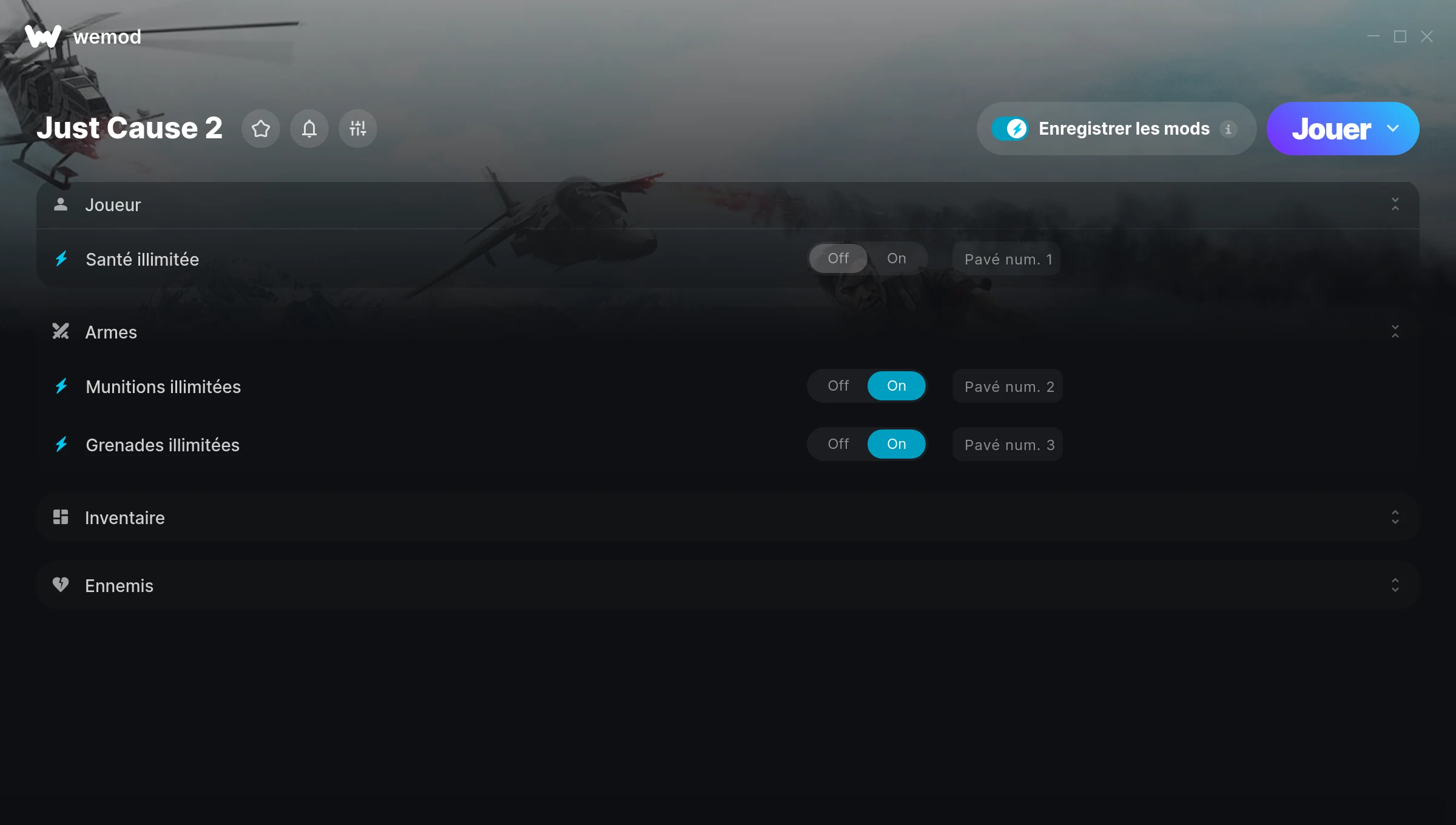 How do I use the cheats in Just Cause 2?WeMod will safely display all of the games on your PC. Open a game from the list and simply press play. After the game loads and once you’re in-game, you can start enabling different cheats!Will this work with my game version?WeMod uses advanced technology to detect the game version you’re running and will let you know if it’s supported. If it’s not, you will still have the option of giving it a try or requesting an update!