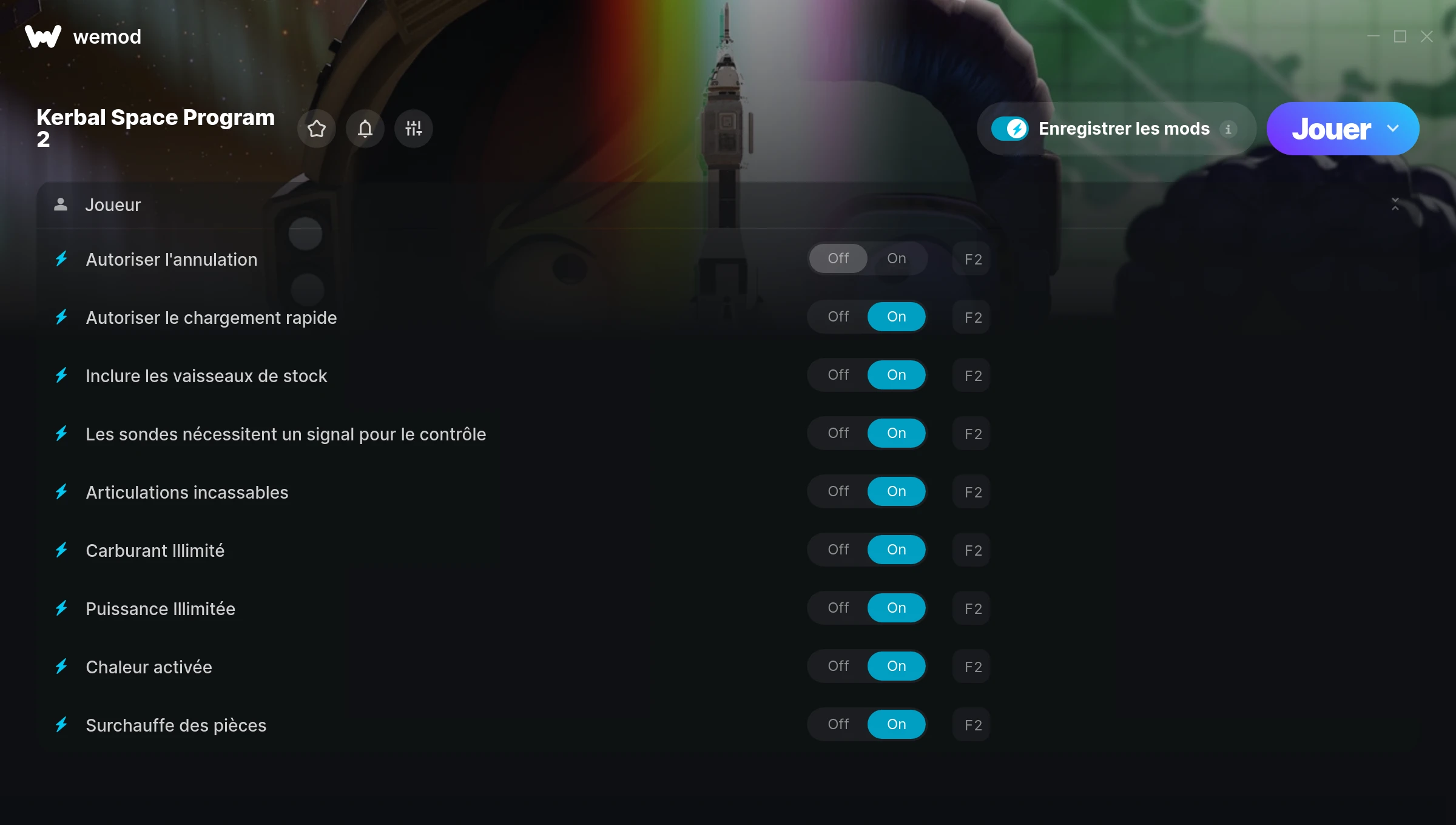 How do I use the cheats in Kerbal Space Program 2?WeMod will safely display all of the games on your PC. Open a game from the list and simply press play. After the game loads and once you’re in-game, you can start enabling different cheats!Will this work with my game version?WeMod uses advanced technology to detect the game version you’re running and will let you know if it’s supported. If it’s not, you will still have the option of giving it a try or requesting an update!