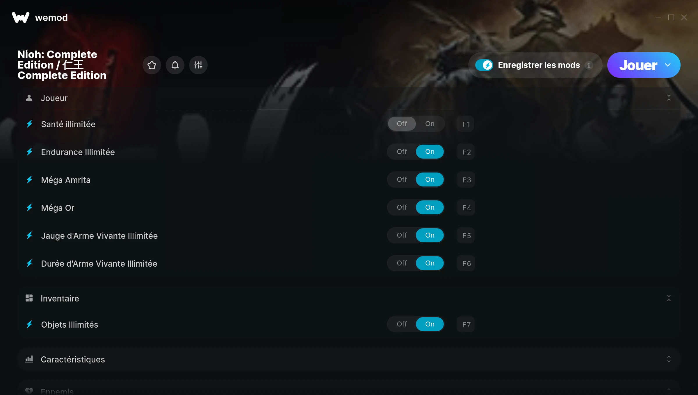 How do I use the cheats in Nioh: Complete Edition / 仁王 Complete Edition?WeMod will safely display all of the games on your PC. Open a game from the list and simply press play. After the game loads and once you’re in-game, you can start enabling different cheats!Will this work with my game version?WeMod uses advanced technology to detect the game version you’re running and will let you know if it’s supported. If it’s not, you will still have the option of giving it a try or requesting an update!