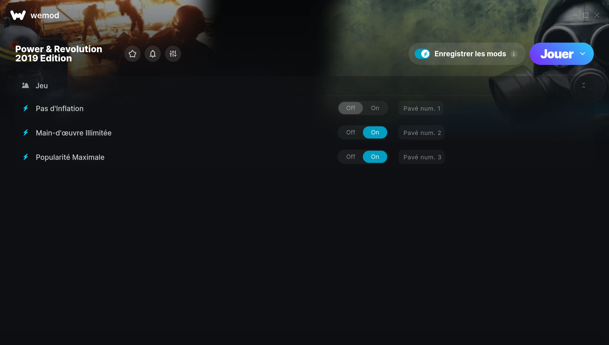 How do I use the cheats in Power & Revolution 2019 Edition?WeMod will safely display all of the games on your PC. Open a game from the list and simply press play. After the game loads and once you’re in-game, you can start enabling different cheats!Will this work with my game version?WeMod uses advanced technology to detect the game version you’re running and will let you know if it’s supported. If it’s not, you will still have the option of giving it a try or requesting an update!