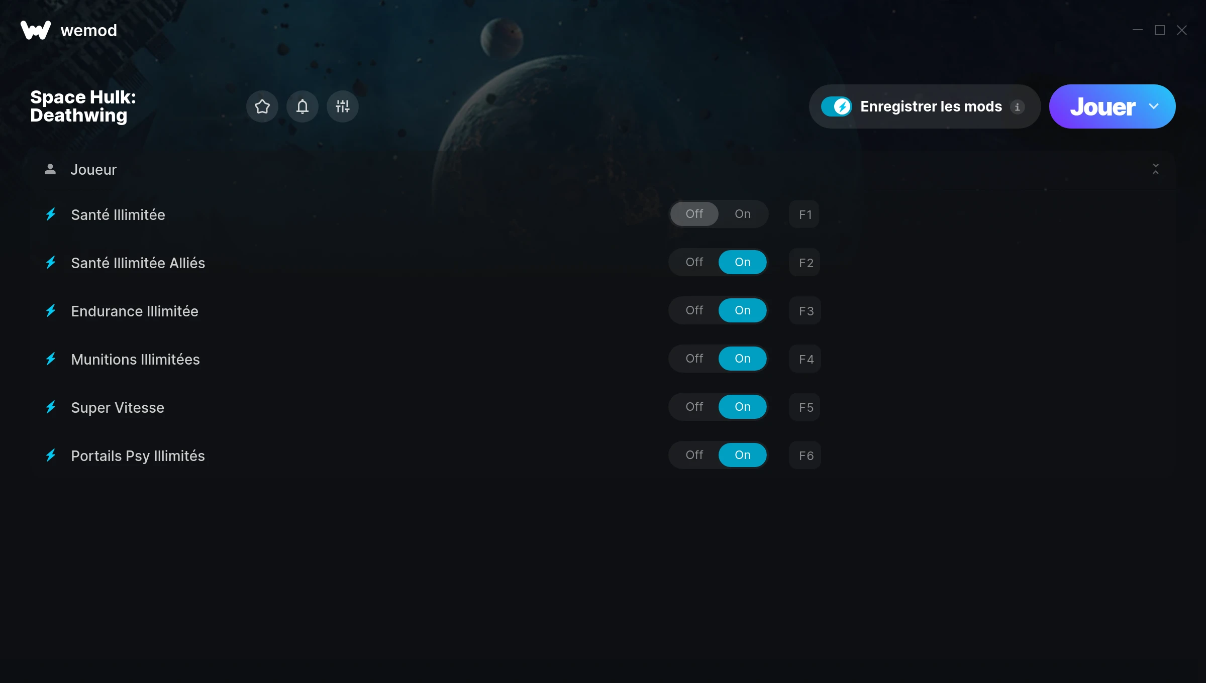 How do I use the cheats in Space Hulk: Deathwing?WeMod will safely display all of the games on your PC. Open a game from the list and simply press play. After the game loads and once you’re in-game, you can start enabling different cheats!Will this work with my game version?WeMod uses advanced technology to detect the game version you’re running and will let you know if it’s supported. If it’s not, you will still have the option of giving it a try or requesting an update!