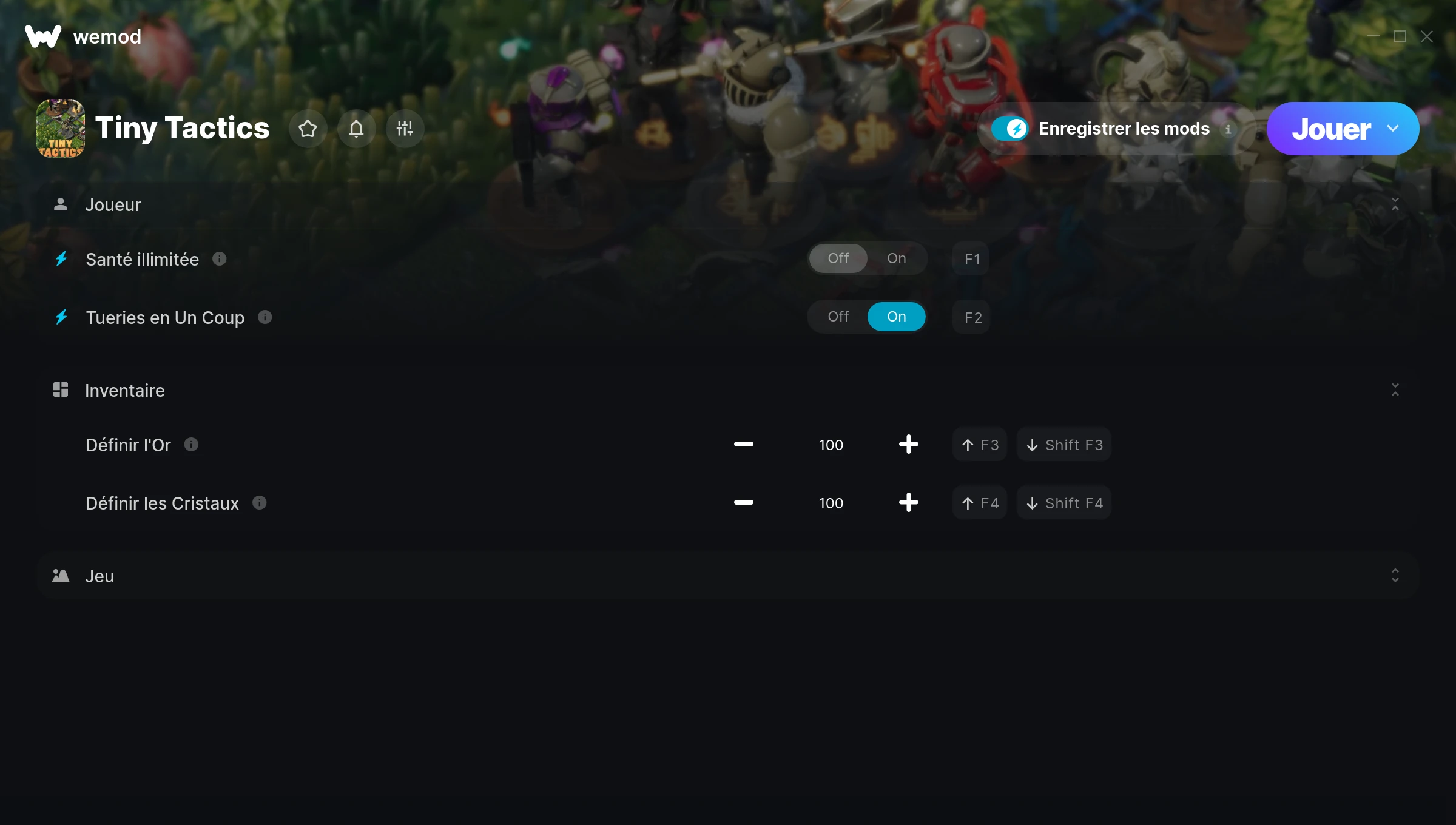 How do I use the cheats in Tiny Tactics?WeMod will safely display all of the games on your PC. Open a game from the list and simply press play. After the game loads and once you’re in-game, you can start enabling different cheats!Will this work with my game version?WeMod uses advanced technology to detect the game version you’re running and will let you know if it’s supported. If it’s not, you will still have the option of giving it a try or requesting an update!