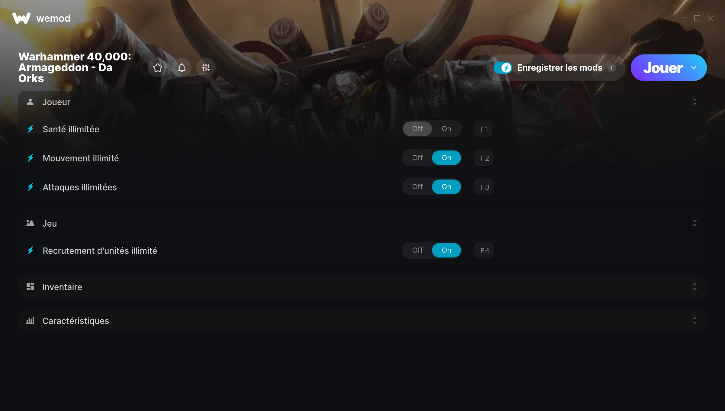 How do I use the cheats in Warhammer 40,000: Armageddon - Da Orks?WeMod will safely display all of the games on your PC. Open a game from the list and simply press play. After the game loads and once you’re in-game, you can start enabling different cheats!Will this work with my game version?WeMod uses advanced technology to detect the game version you’re running and will let you know if it’s supported. If it’s not, you will still have the option of giving it a try or requesting an update!