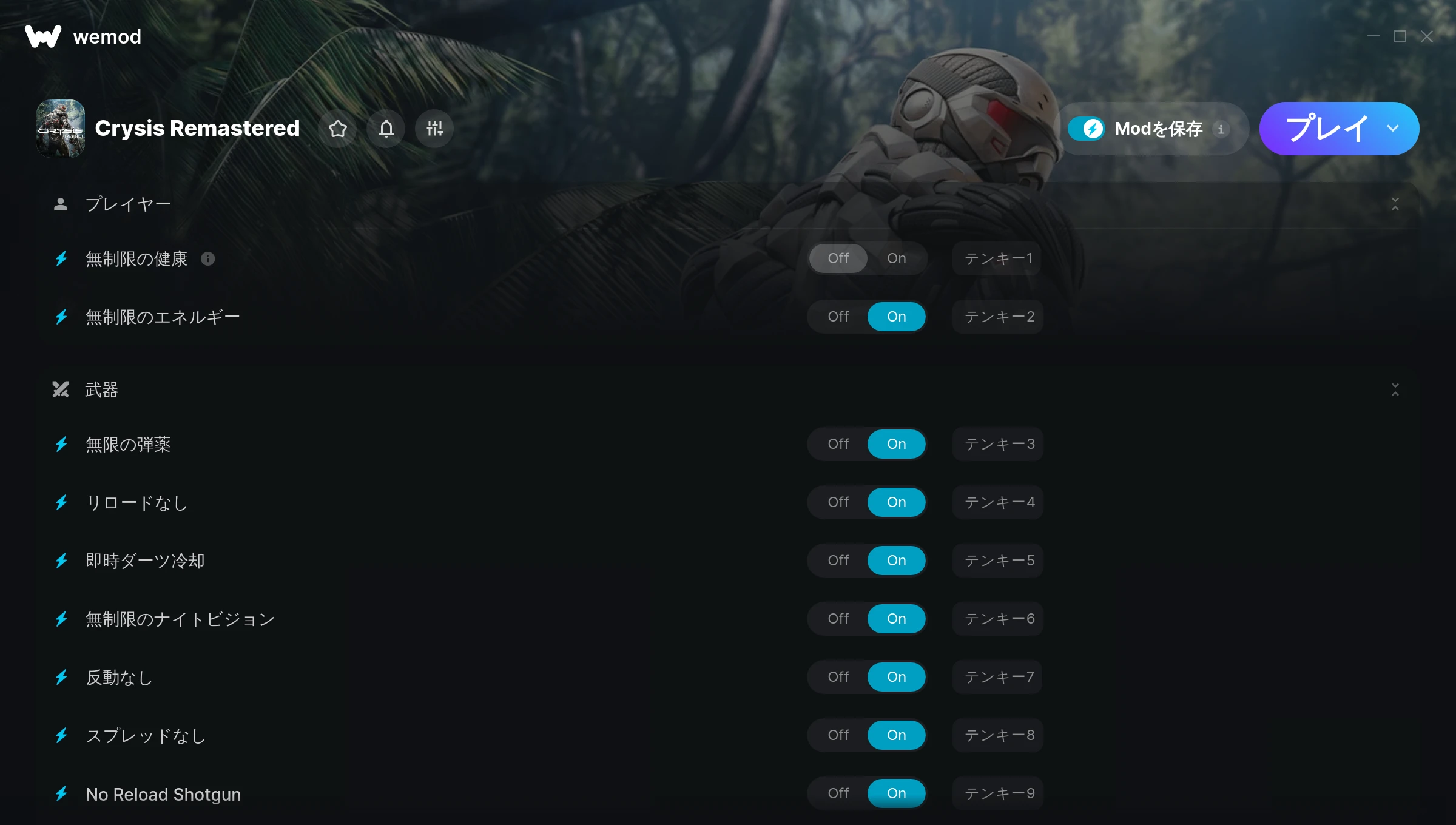 How do I use the cheats in Crysis Remastered?WeMod will safely display all of the games on your PC. Open a game from the list and simply press play. After the game loads and once you’re in-game, you can start enabling different cheats!Will this work with my game version?WeMod uses advanced technology to detect the game version you’re running and will let you know if it’s supported. If it’s not, you will still have the option of giving it a try or requesting an update!