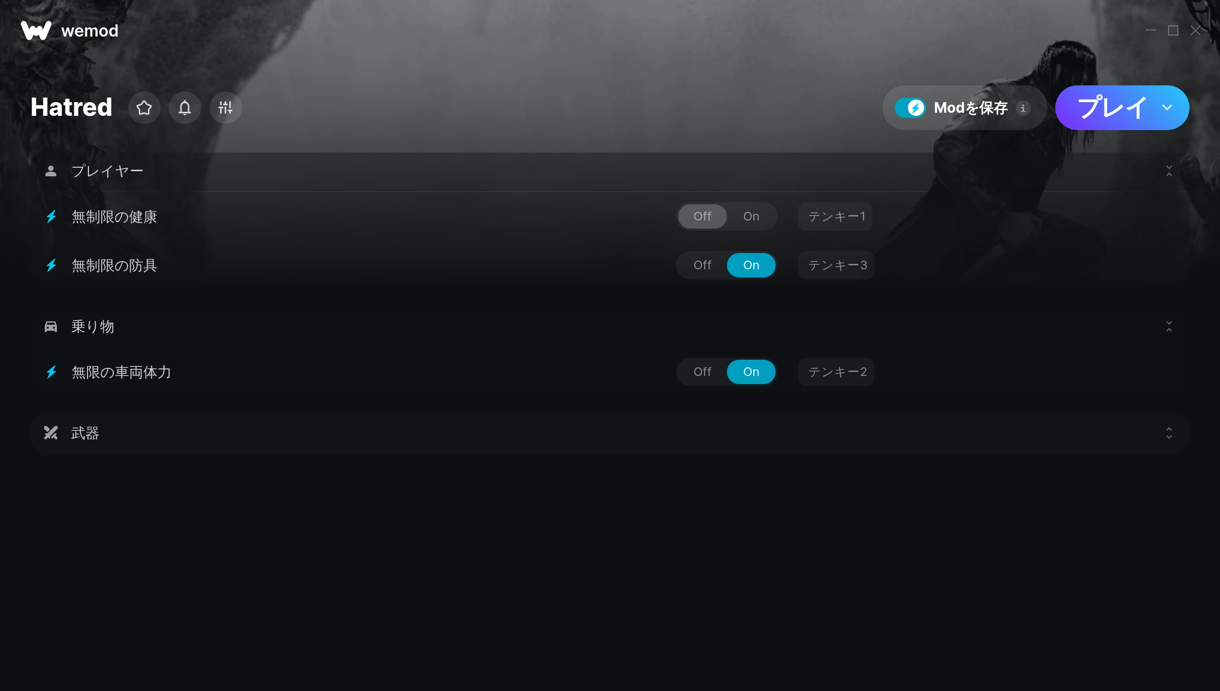 How do I use the cheats in Hatred?WeMod will safely display all of the games on your PC. Open a game from the list and simply press play. After the game loads and once you’re in-game, you can start enabling different cheats!Will this work with my game version?WeMod uses advanced technology to detect the game version you’re running and will let you know if it’s supported. If it’s not, you will still have the option of giving it a try or requesting an update!