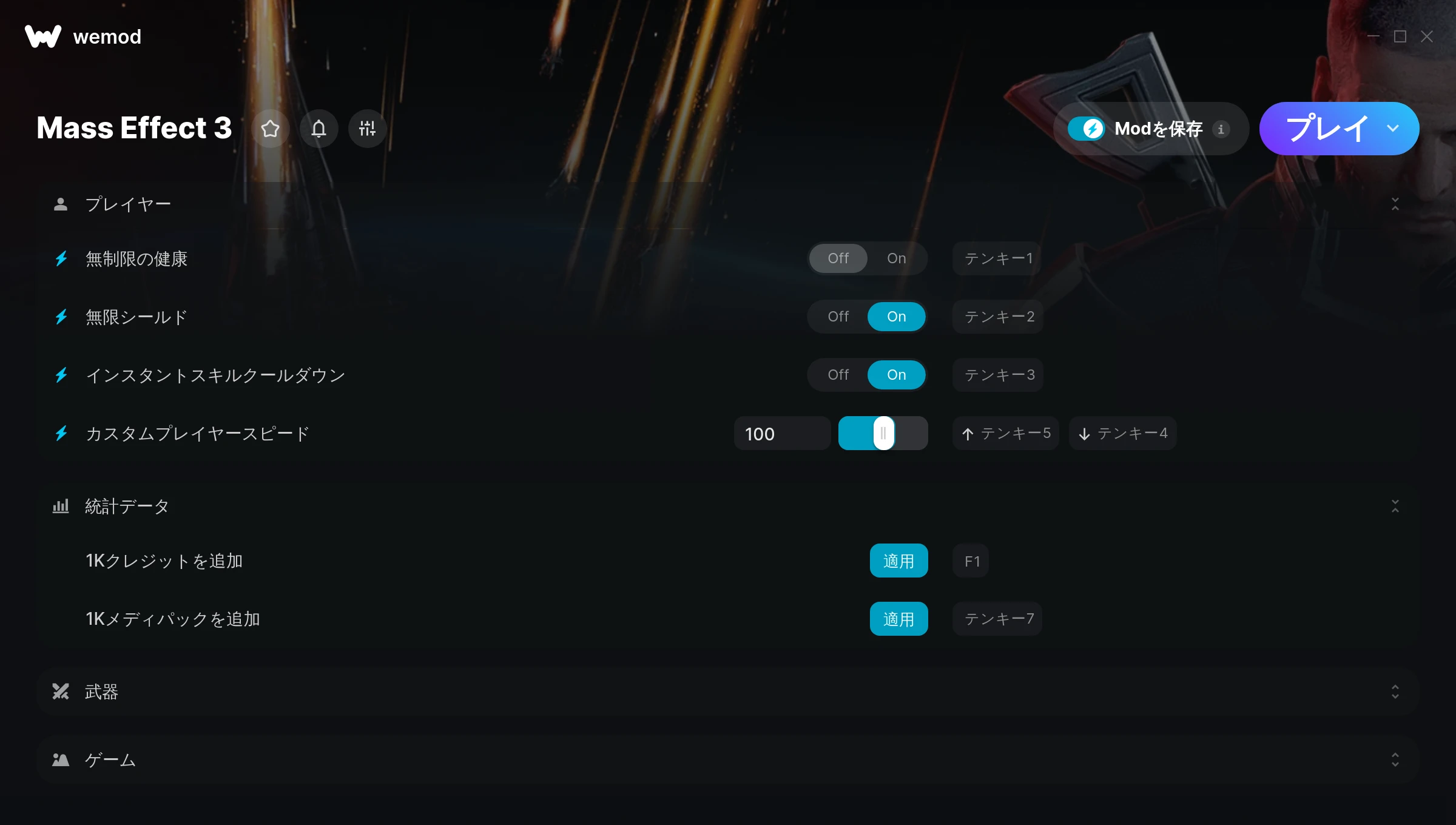How do I use the cheats in Mass Effect 3?WeMod will safely display all of the games on your PC. Open a game from the list and simply press play. After the game loads and once you’re in-game, you can start enabling different cheats!Will this work with my game version?WeMod uses advanced technology to detect the game version you’re running and will let you know if it’s supported. If it’s not, you will still have the option of giving it a try or requesting an update!