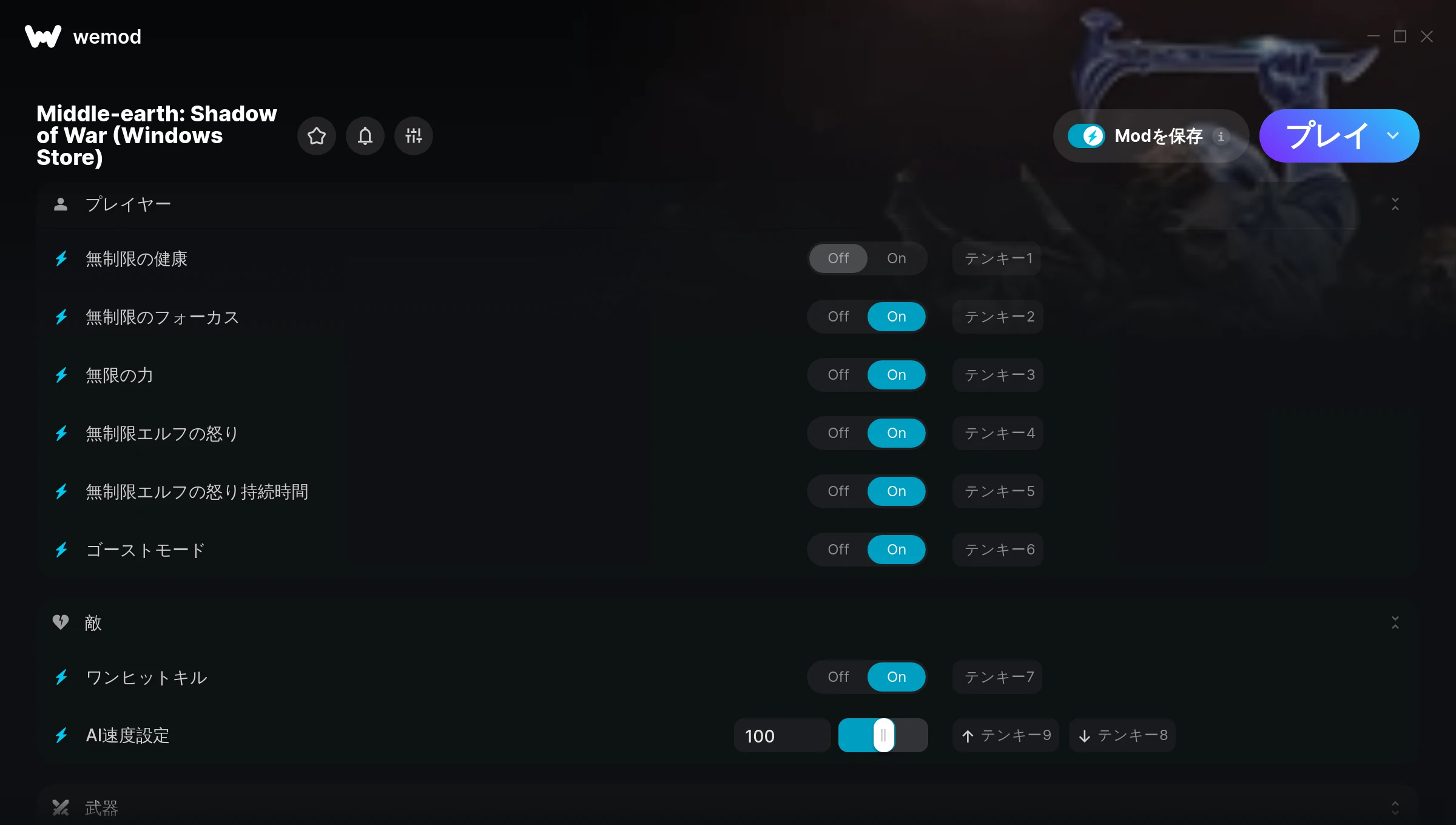 for Middle-earth: Shadow of War (Windows Store) with WeMod