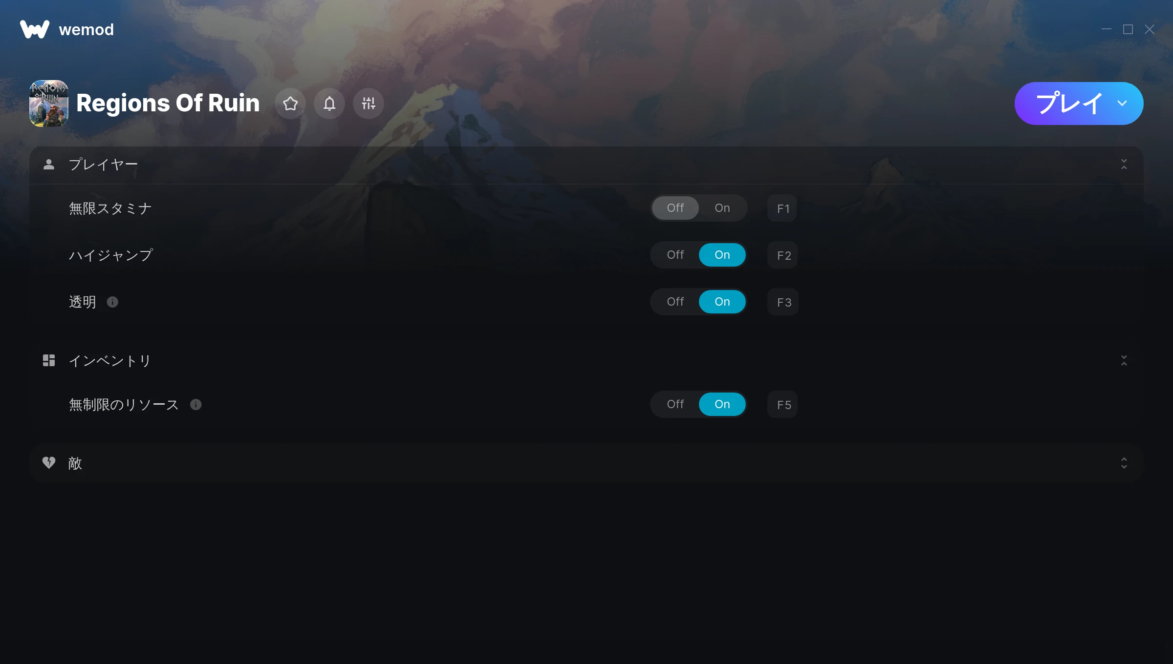 How do I use the cheats in Regions Of Ruin?WeMod will safely display all of the games on your PC. Open a game from the list and simply press play. After the game loads and once you’re in-game, you can start enabling different cheats!Will this work with my game version?WeMod uses advanced technology to detect the game version you’re running and will let you know if it’s supported. If it’s not, you will still have the option of giving it a try or requesting an update!