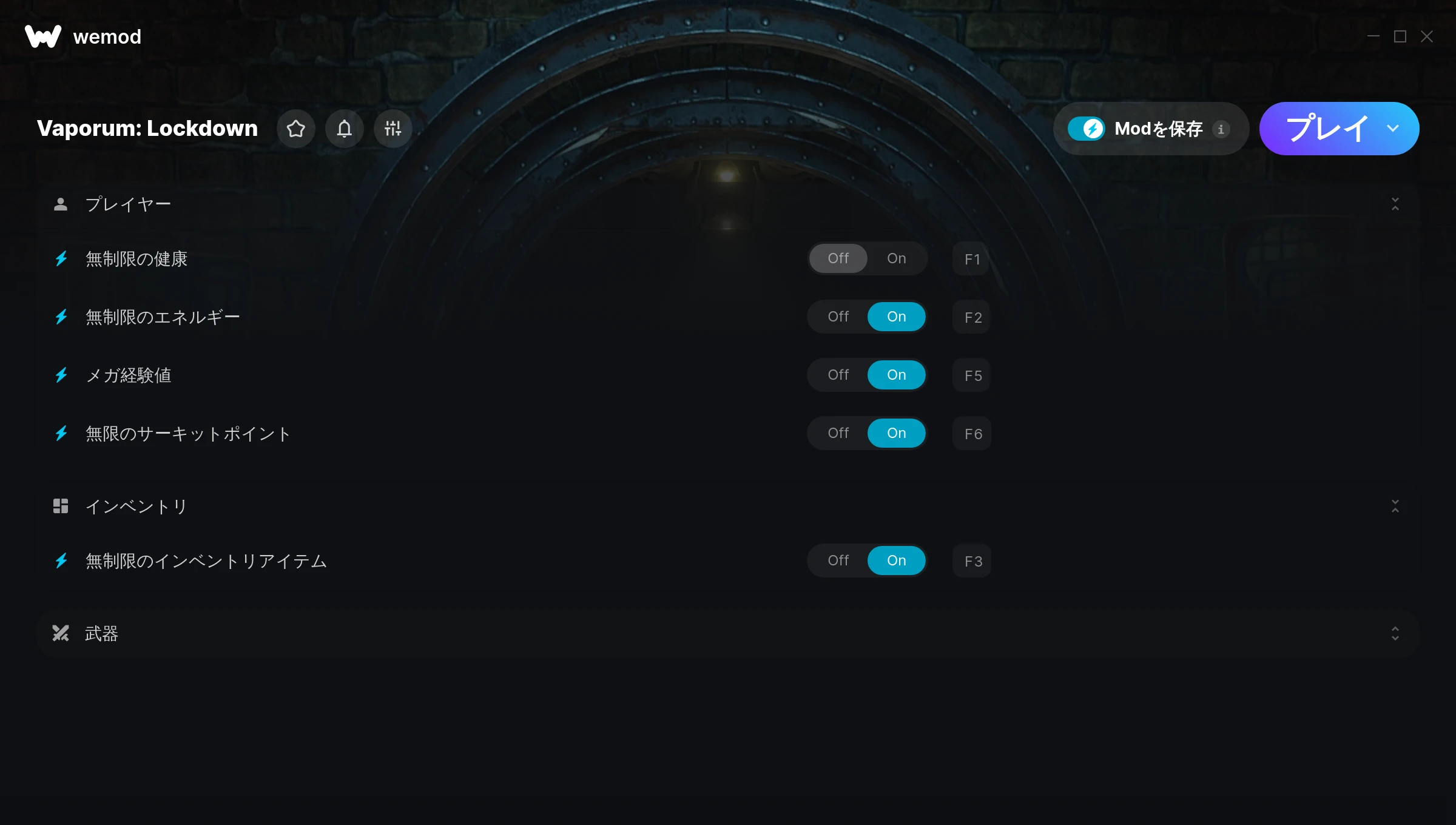 How do I use the cheats in Vaporum: Lockdown?WeMod will safely display all of the games on your PC. Open a game from the list and simply press play. After the game loads and once you’re in-game, you can start enabling different cheats!Will this work with my game version?WeMod uses advanced technology to detect the game version you’re running and will let you know if it’s supported. If it’s not, you will still have the option of giving it a try or requesting an update!