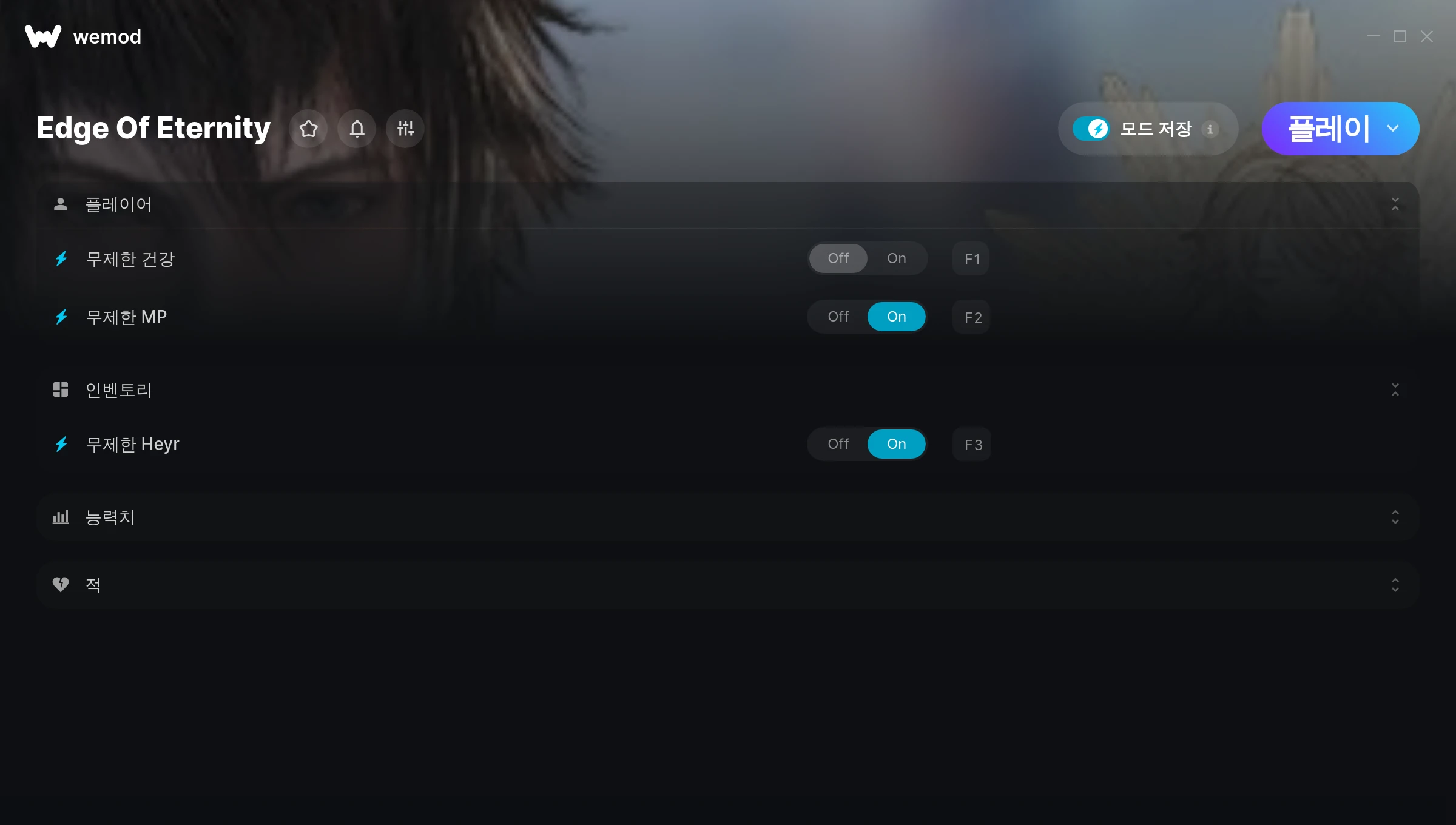 How do I use the cheats in Edge Of Eternity?WeMod will safely display all of the games on your PC. Open a game from the list and simply press play. After the game loads and once you’re in-game, you can start enabling different cheats!Will this work with my game version?WeMod uses advanced technology to detect the game version you’re running and will let you know if it’s supported. If it’s not, you will still have the option of giving it a try or requesting an update!