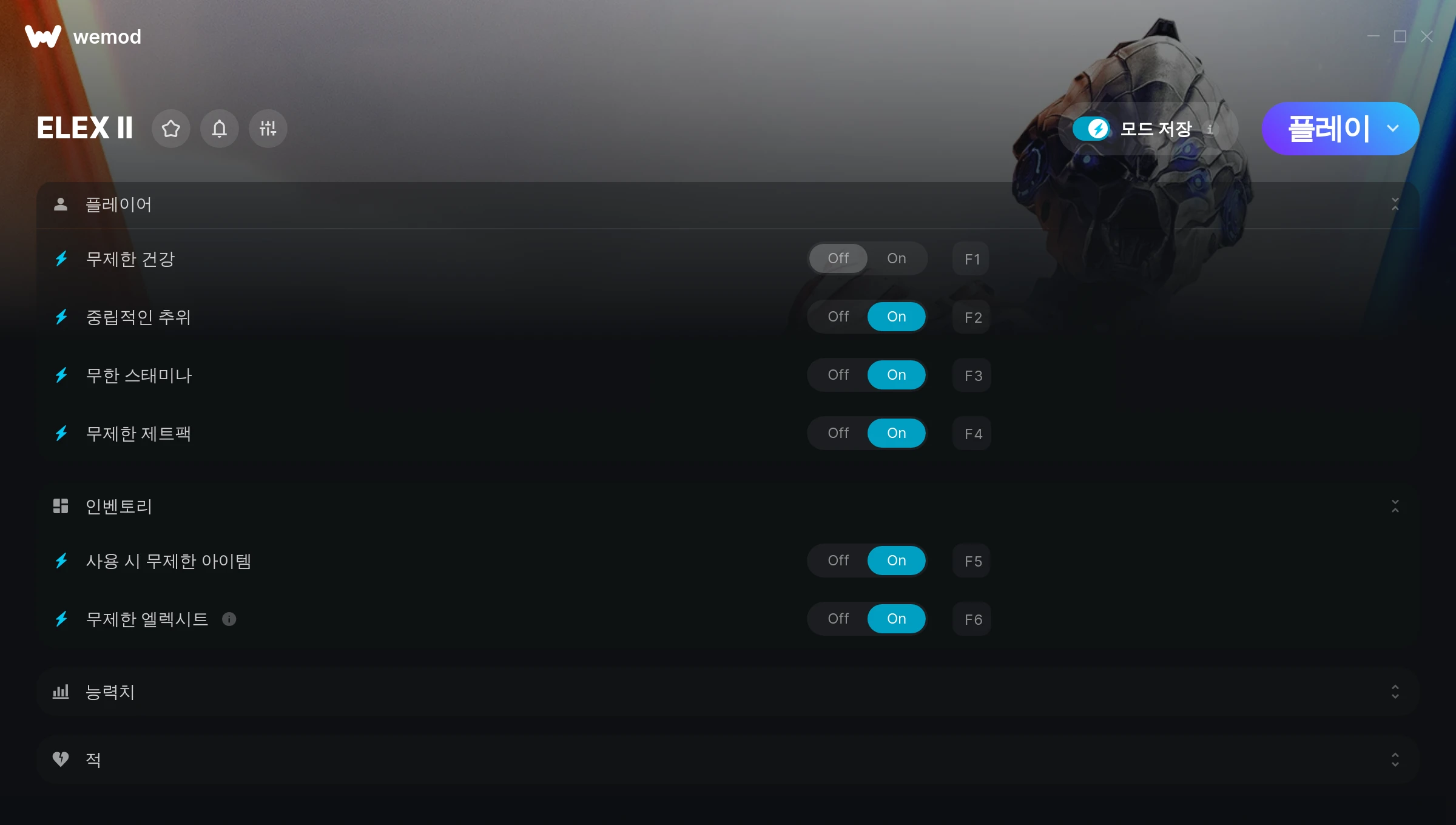 How do I use the cheats in ELEX II?WeMod will safely display all of the games on your PC. Open a game from the list and simply press play. After the game loads and once you’re in-game, you can start enabling different cheats!Will this work with my game version?WeMod uses advanced technology to detect the game version you’re running and will let you know if it’s supported. If it’s not, you will still have the option of giving it a try or requesting an update!