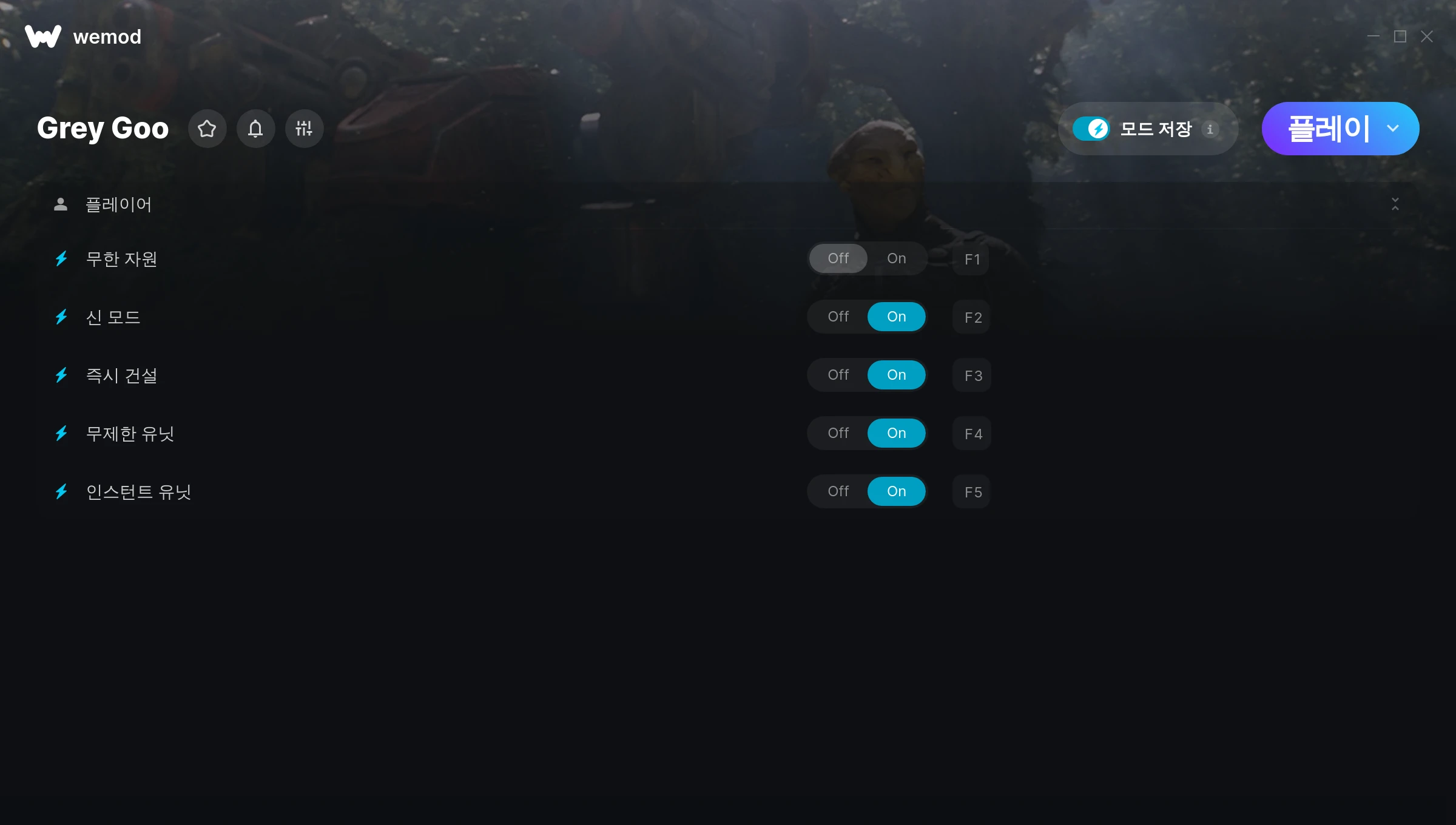How do I use the cheats in Grey Goo?WeMod will safely display all of the games on your PC. Open a game from the list and simply press play. After the game loads and once you’re in-game, you can start enabling different cheats!Will this work with my game version?WeMod uses advanced technology to detect the game version you’re running and will let you know if it’s supported. If it’s not, you will still have the option of giving it a try or requesting an update!