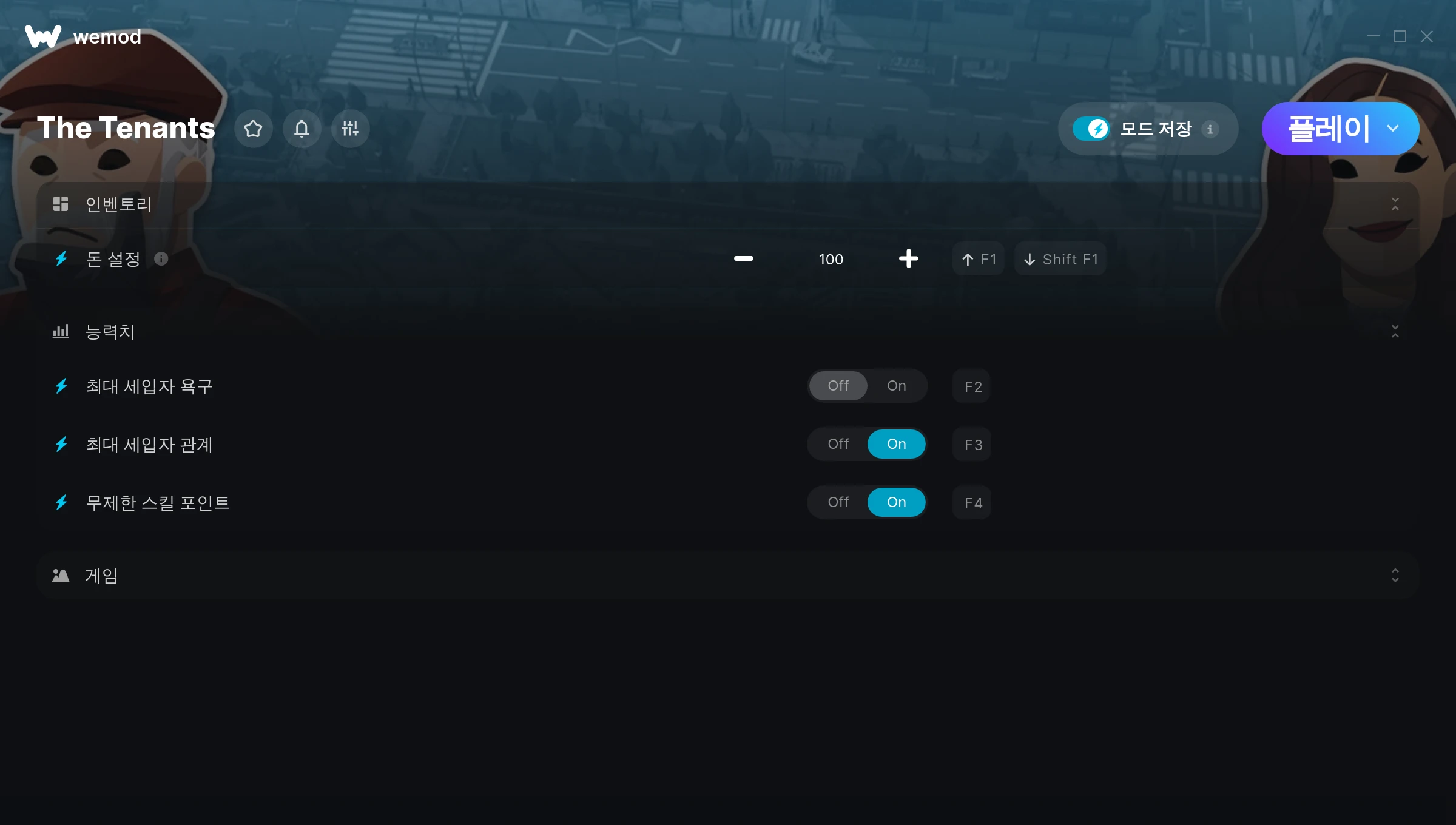 How do I use the cheats in The Tenants?WeMod will safely display all of the games on your PC. Open a game from the list and simply press play. After the game loads and once you’re in-game, you can start enabling different cheats!Will this work with my game version?WeMod uses advanced technology to detect the game version you’re running and will let you know if it’s supported. If it’s not, you will still have the option of giving it a try or requesting an update!