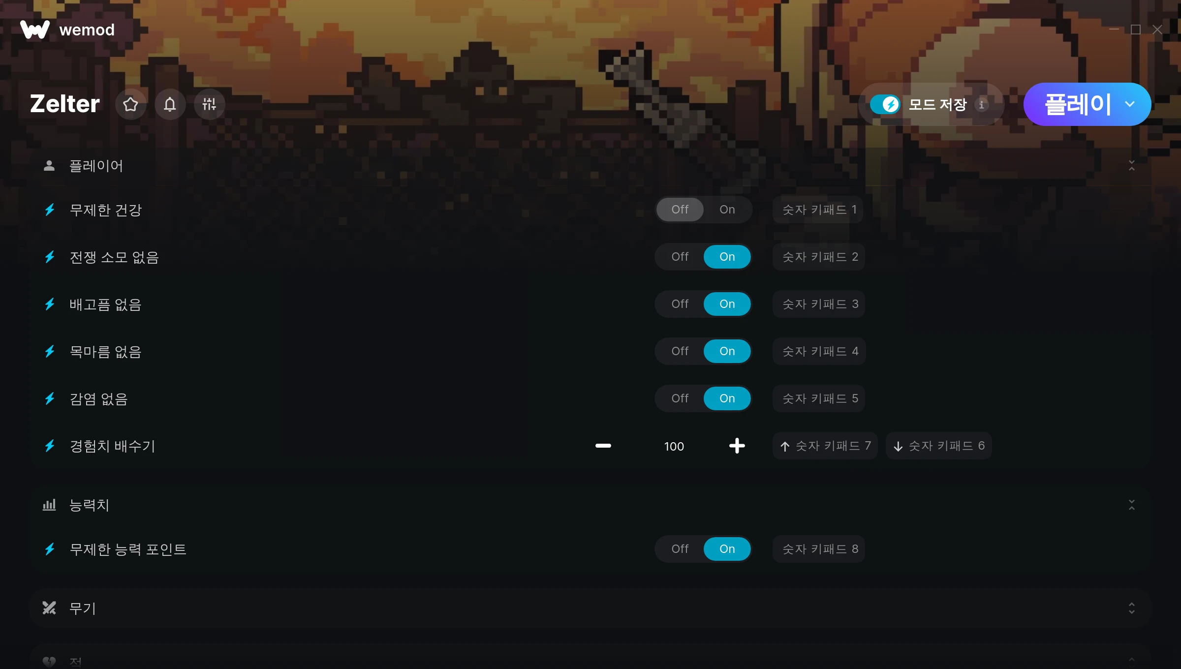How do I use the cheats in Zelter?WeMod will safely display all of the games on your PC. Open a game from the list and simply press play. After the game loads and once you’re in-game, you can start enabling different cheats!Will this work with my game version?WeMod uses advanced technology to detect the game version you’re running and will let you know if it’s supported. If it’s not, you will still have the option of giving it a try or requesting an update!