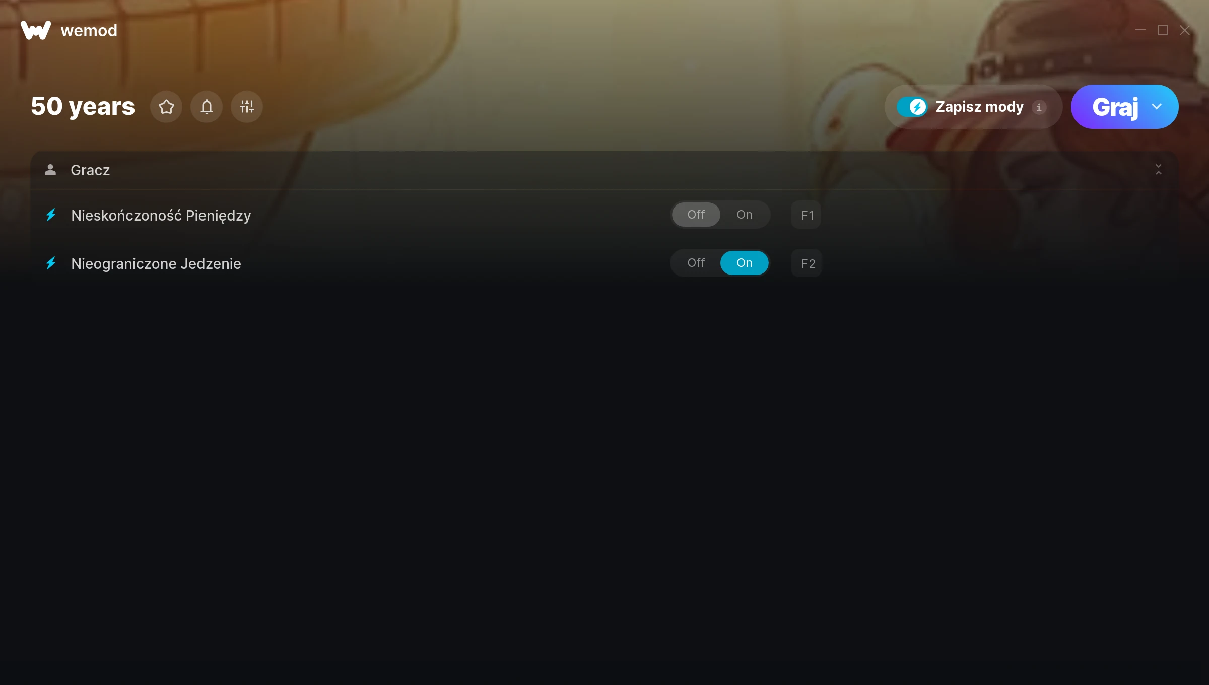 How do I use the cheats in 50 years?WeMod will safely display all of the games on your PC. Open a game from the list and simply press play. After the game loads and once you’re in-game, you can start enabling different cheats!Will this work with my game version?WeMod uses advanced technology to detect the game version you’re running and will let you know if it’s supported. If it’s not, you will still have the option of giving it a try or requesting an update!