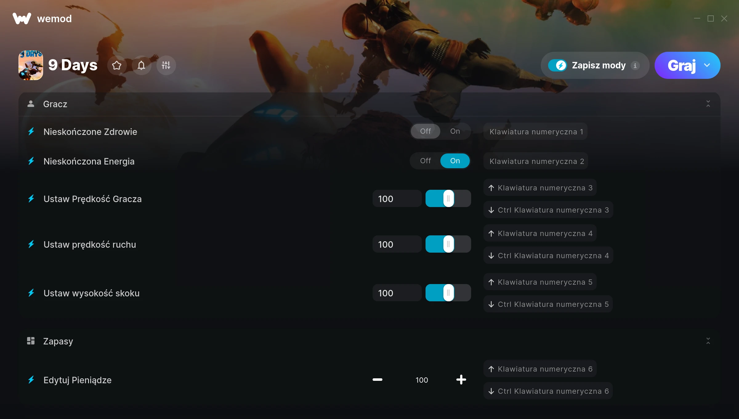 How do I use the cheats in 9 Days?WeMod will safely display all of the games on your PC. Open a game from the list and simply press play. After the game loads and once you’re in-game, you can start enabling different cheats!Will this work with my game version?WeMod uses advanced technology to detect the game version you’re running and will let you know if it’s supported. If it’s not, you will still have the option of giving it a try or requesting an update!