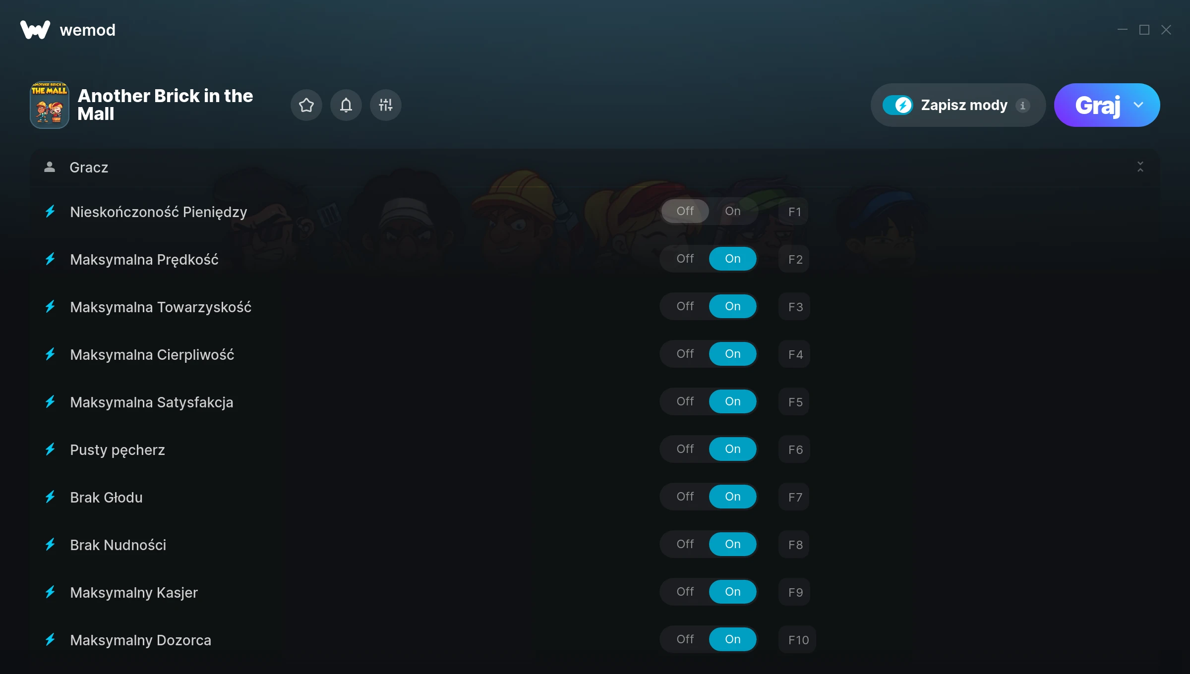 How do I use the cheats in Another Brick in the Mall?WeMod will safely display all of the games on your PC. Open a game from the list and simply press play. After the game loads and once you’re in-game, you can start enabling different cheats!Will this work with my game version?WeMod uses advanced technology to detect the game version you’re running and will let you know if it’s supported. If it’s not, you will still have the option of giving it a try or requesting an update!