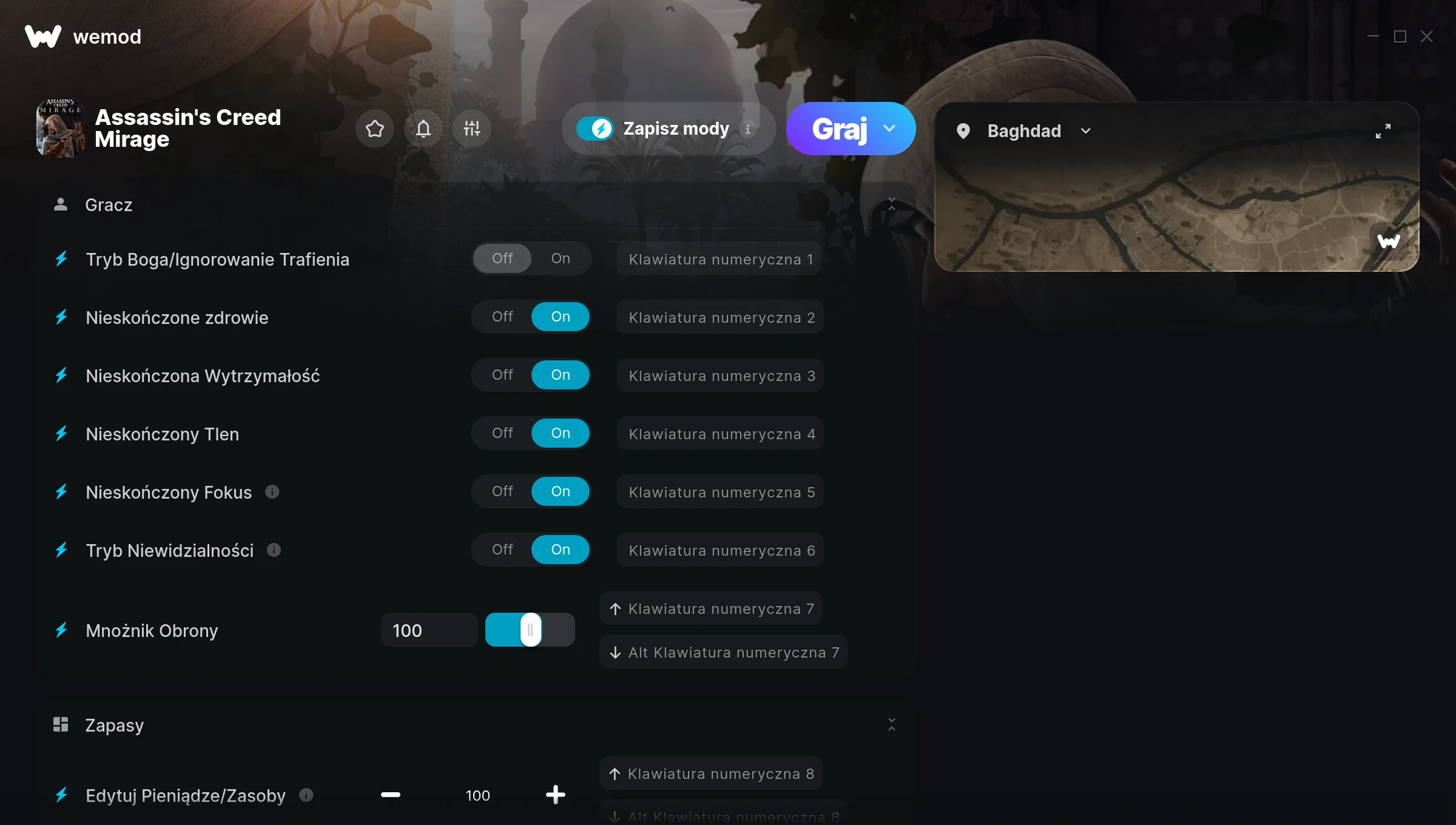 How do I use the cheats in Assassin's Creed Mirage?WeMod will safely display all of the games on your PC. Open a game from the list and simply press play. After the game loads and once you’re in-game, you can start enabling different cheats!Will this work with my game version?WeMod uses advanced technology to detect the game version you’re running and will let you know if it’s supported. If it’s not, you will still have the option of giving it a try or requesting an update!
