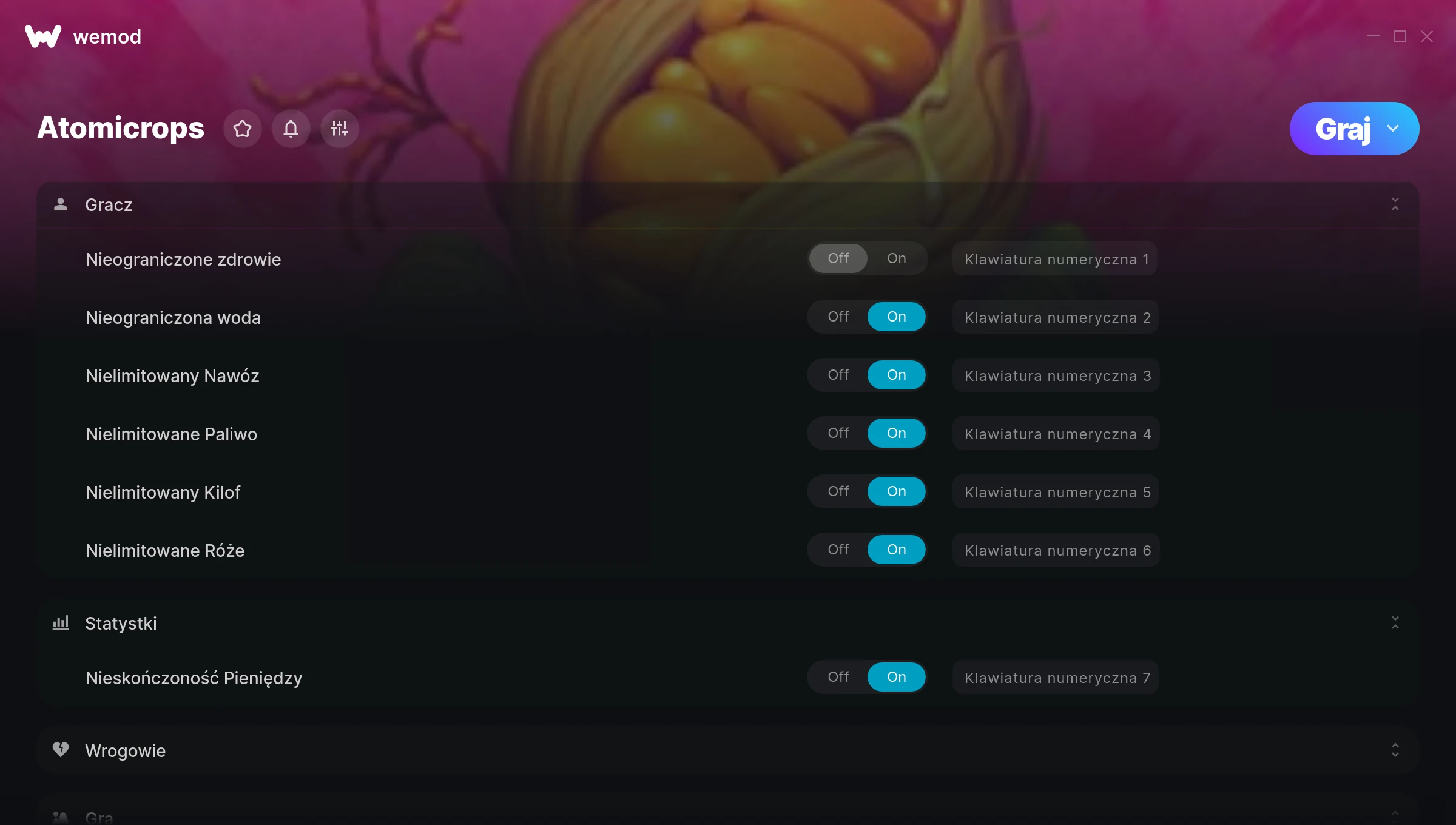 How do I use the cheats in Atomicrops?WeMod will safely display all of the games on your PC. Open a game from the list and simply press play. After the game loads and once you’re in-game, you can start enabling different cheats!Will this work with my game version?WeMod uses advanced technology to detect the game version you’re running and will let you know if it’s supported. If it’s not, you will still have the option of giving it a try or requesting an update!