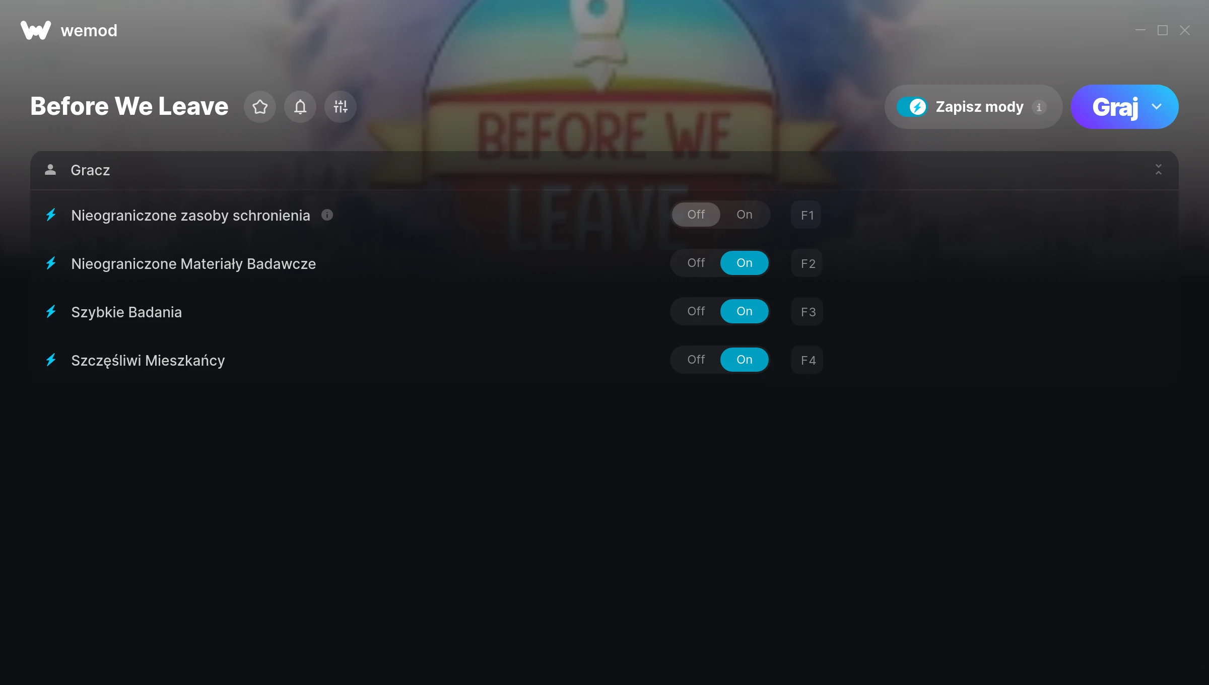 How do I use the cheats in Before We Leave?WeMod will safely display all of the games on your PC. Open a game from the list and simply press play. After the game loads and once you’re in-game, you can start enabling different cheats!Will this work with my game version?WeMod uses advanced technology to detect the game version you’re running and will let you know if it’s supported. If it’s not, you will still have the option of giving it a try or requesting an update!