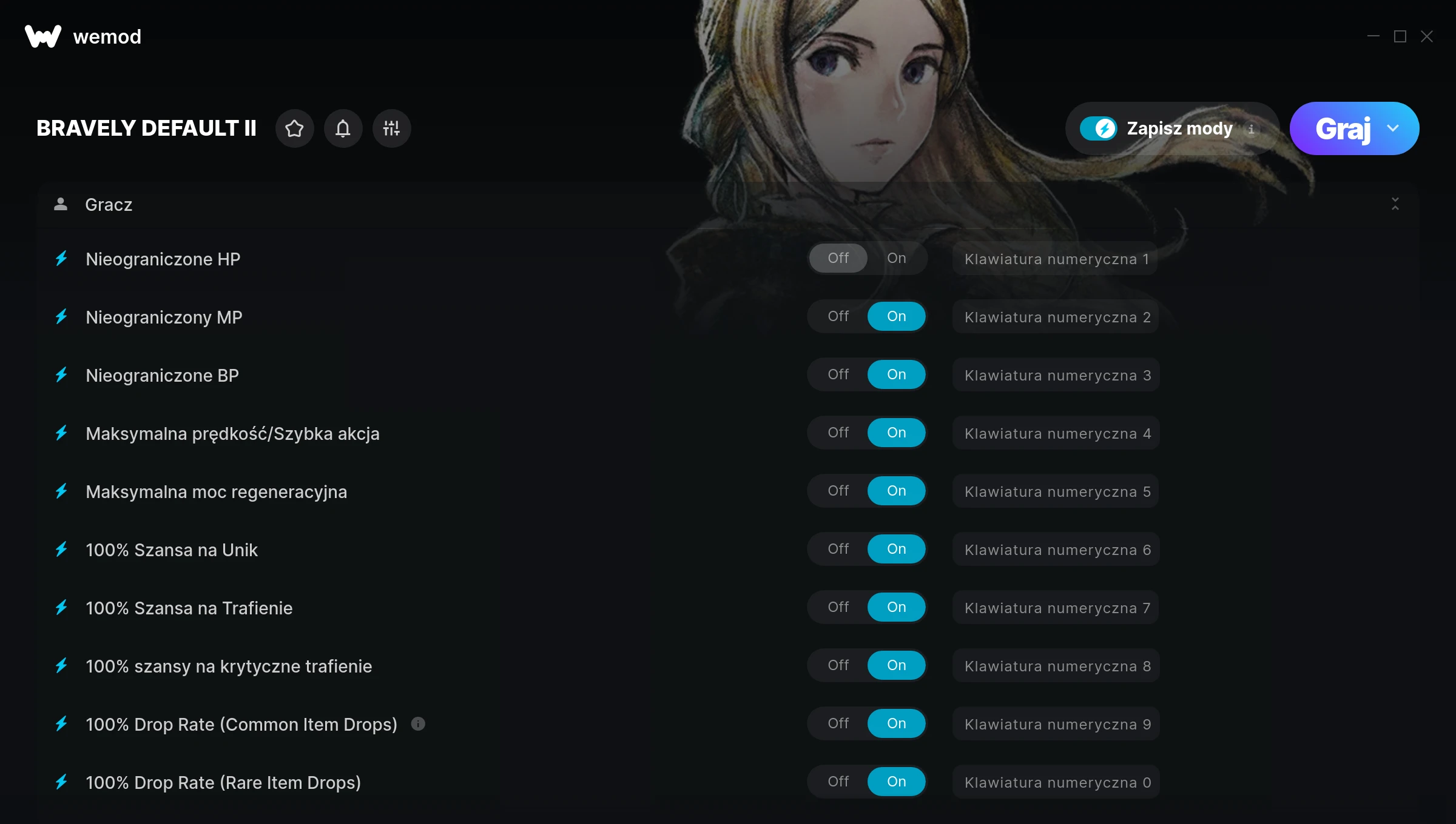 How do I use the cheats in BRAVELY DEFAULT II?WeMod will safely display all of the games on your PC. Open a game from the list and simply press play. After the game loads and once you’re in-game, you can start enabling different cheats!Will this work with my game version?WeMod uses advanced technology to detect the game version you’re running and will let you know if it’s supported. If it’s not, you will still have the option of giving it a try or requesting an update!