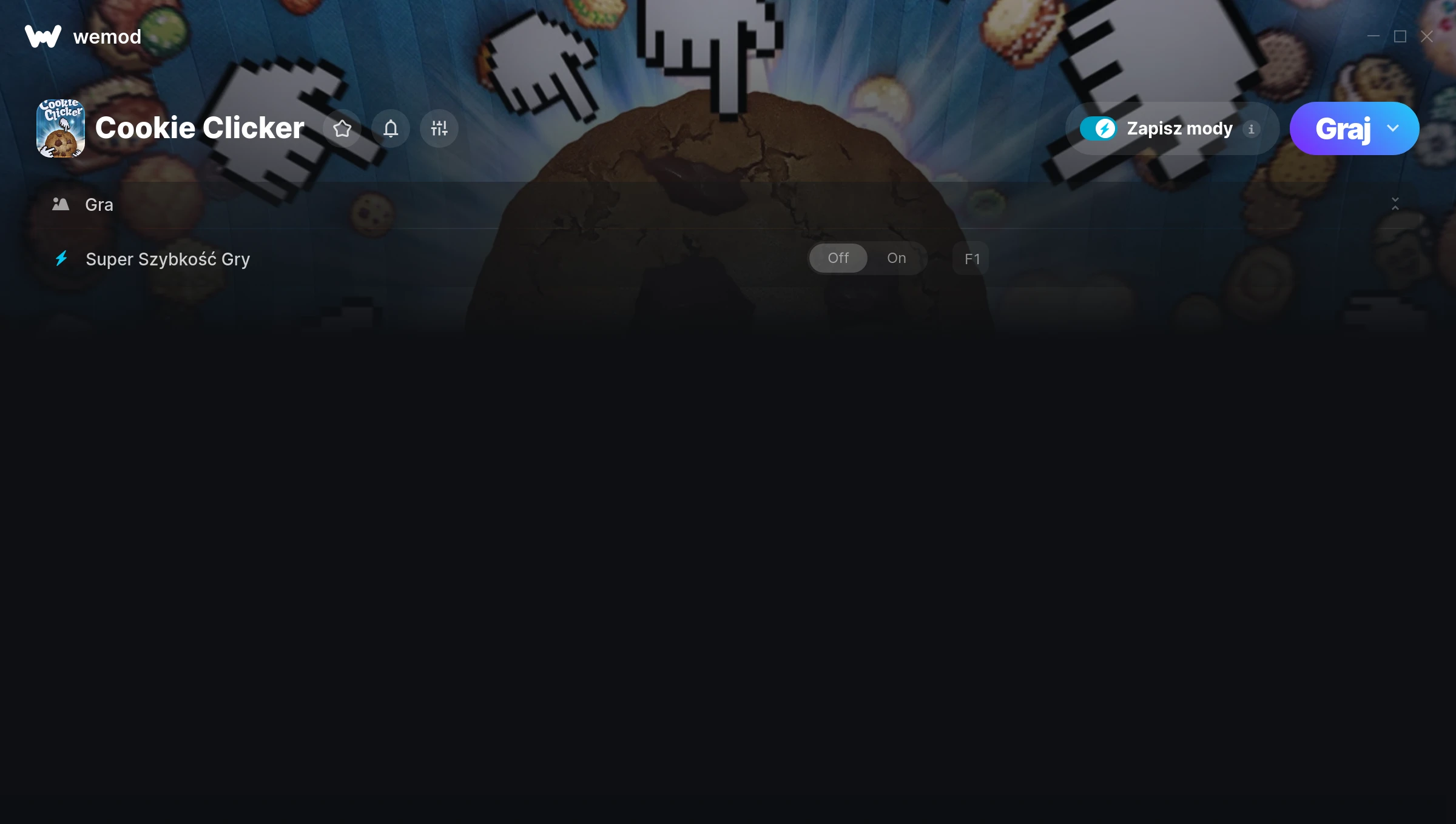 How do I use the cheats in Cookie Clicker?WeMod will safely display all of the games on your PC. Open a game from the list and simply press play. After the game loads and once you’re in-game, you can start enabling different cheats!Will this work with my game version?WeMod uses advanced technology to detect the game version you’re running and will let you know if it’s supported. If it’s not, you will still have the option of giving it a try or requesting an update!