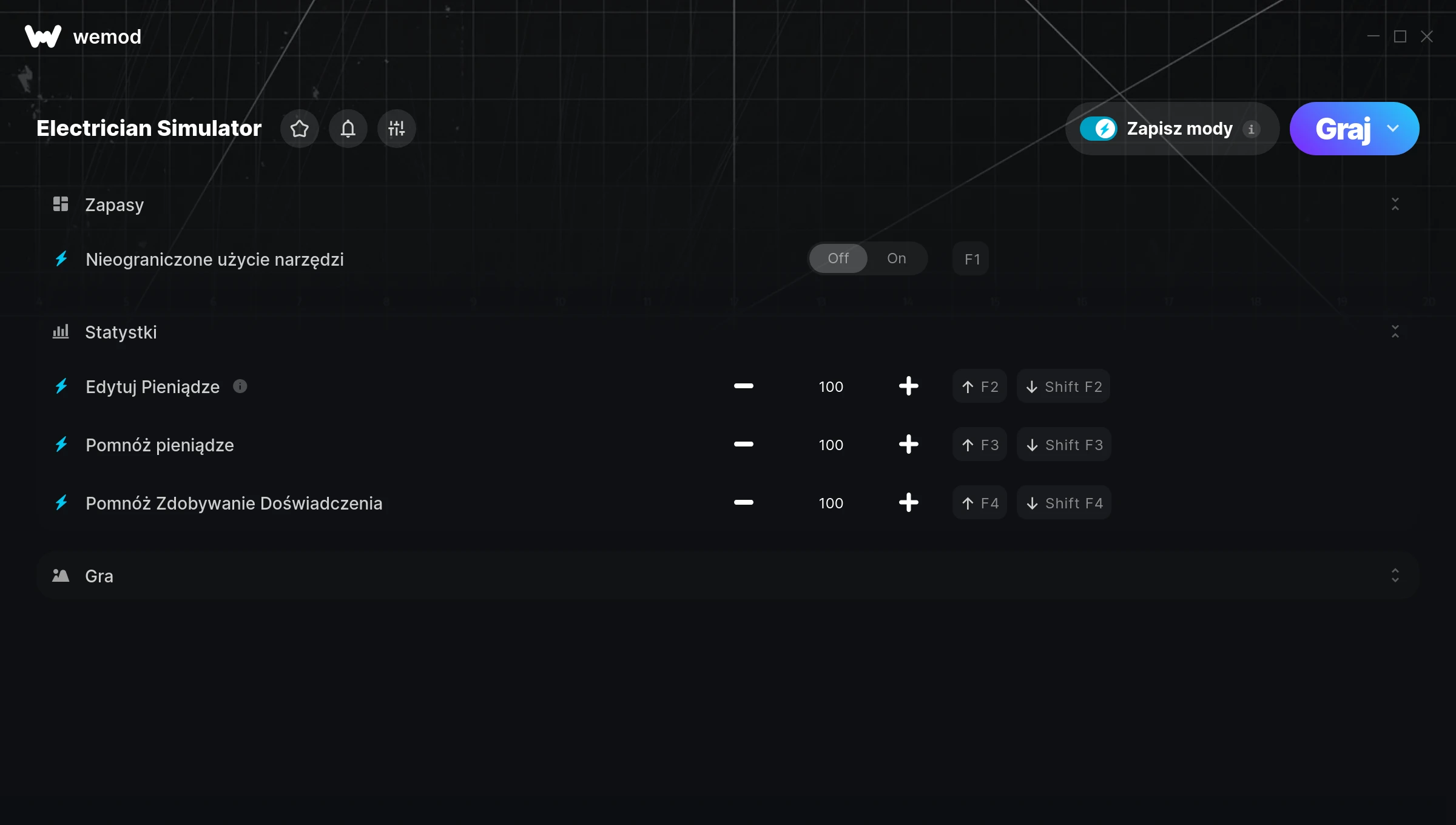 How do I use the cheats in Electrician Simulator?WeMod will safely display all of the games on your PC. Open a game from the list and simply press play. After the game loads and once you’re in-game, you can start enabling different cheats!Will this work with my game version?WeMod uses advanced technology to detect the game version you’re running and will let you know if it’s supported. If it’s not, you will still have the option of giving it a try or requesting an update!