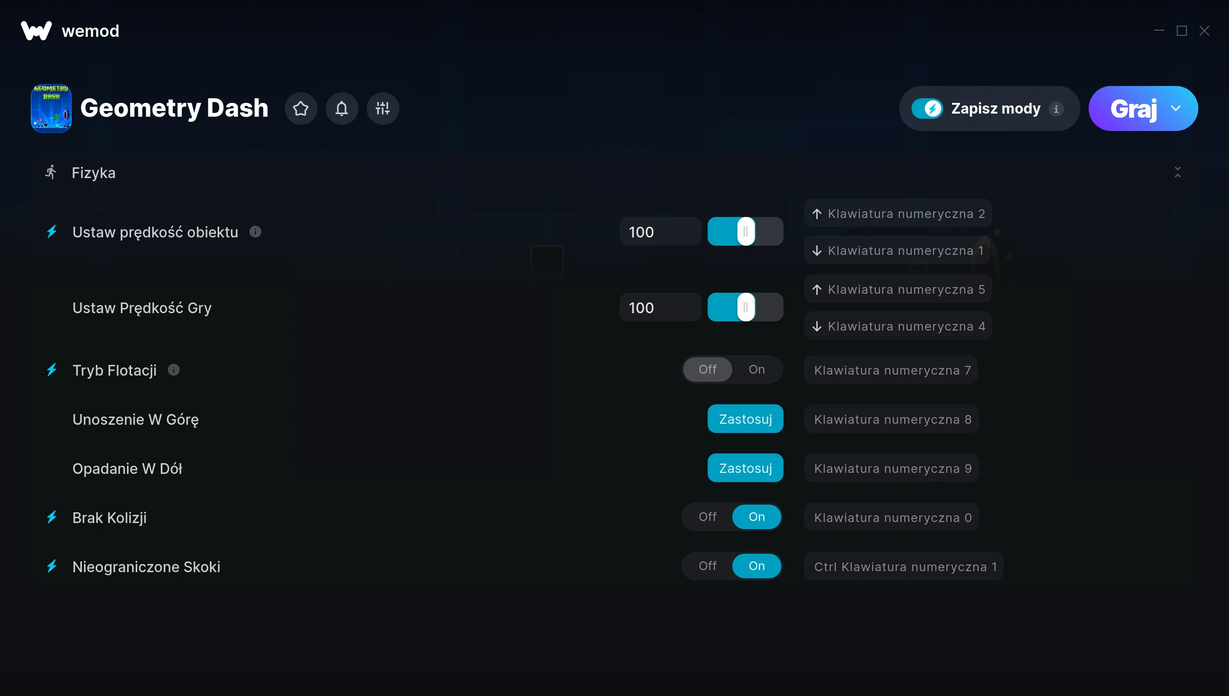 How do I use the cheats in Geometry Dash?WeMod will safely display all of the games on your PC. Open a game from the list and simply press play. After the game loads and once you’re in-game, you can start enabling different cheats!Will this work with my game version?WeMod uses advanced technology to detect the game version you’re running and will let you know if it’s supported. If it’s not, you will still have the option of giving it a try or requesting an update!